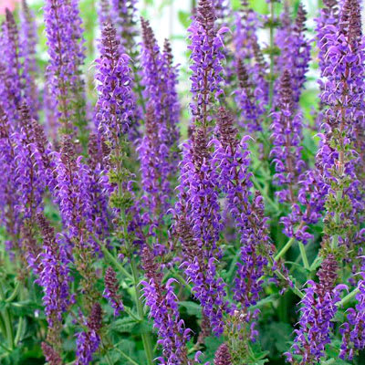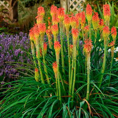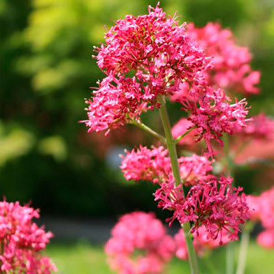 From left to right: Fire Dance Dwarf Poker, Jupiter's Beard Red Valerian, May Night Meadow Sage