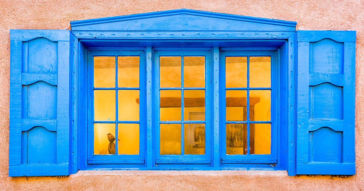 A window peering into a Santa Fe art gallery. The plethora of art galleries is just one reason Santa Fe is a great place to live or visit.