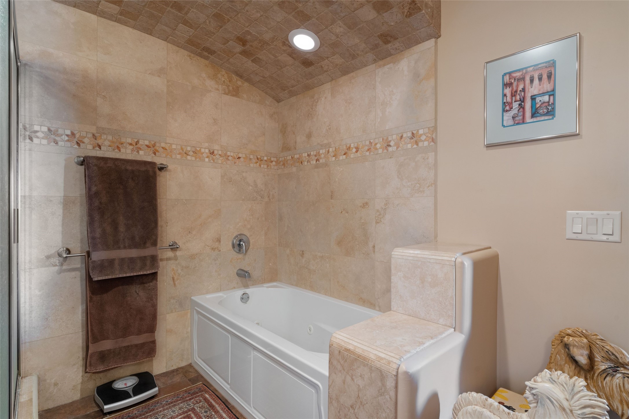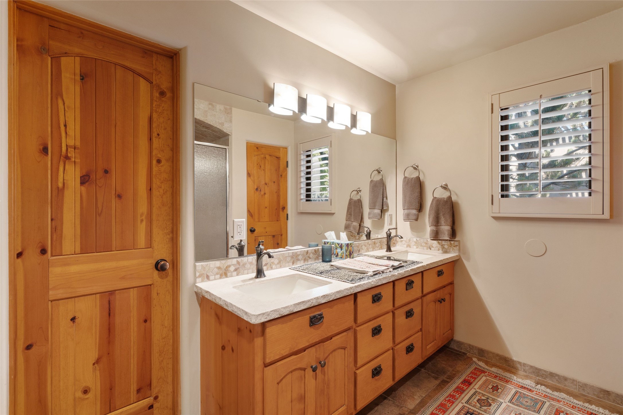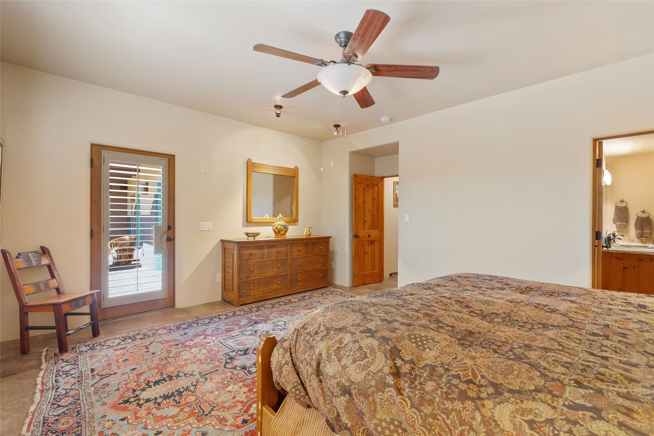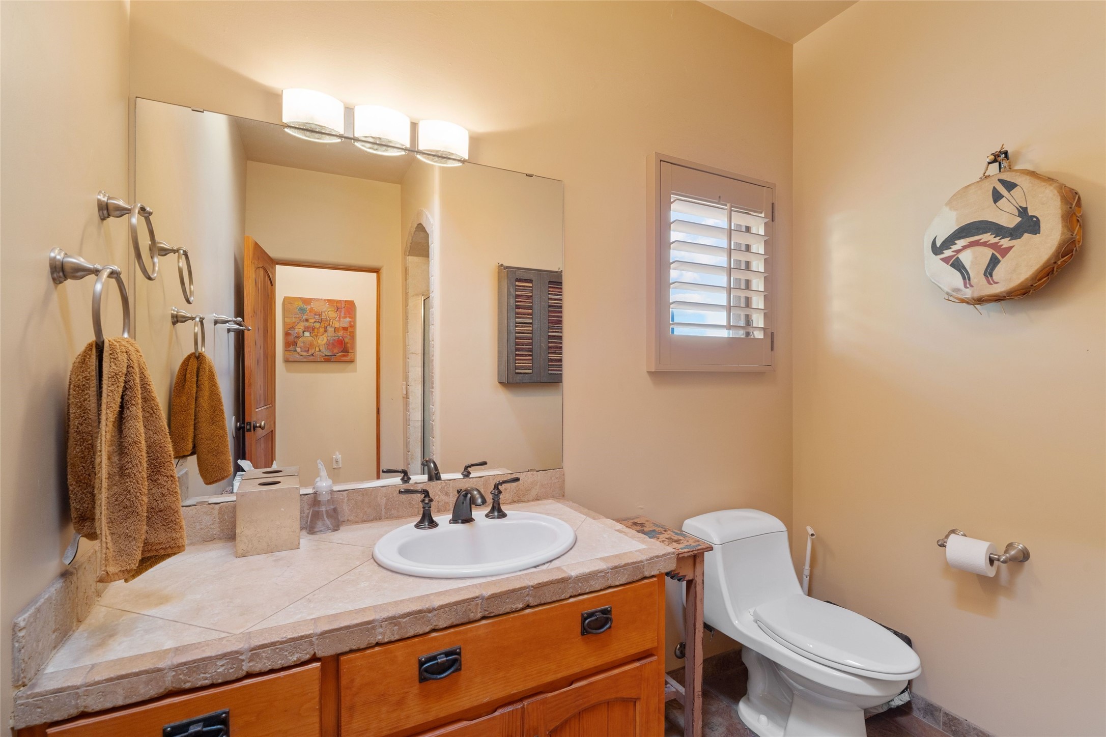 Striking Aldea 3-bedroom, 2.5-bath home bordering rolling green open spaces and surrounded by a National Wildlife Certified Wildlife Habitat. Protected, unobstructed views of the majestic Sangre de Cristo mountains. Located on a cul-de-sac, this beautifully landscaped property features a meticulously maintained yard equipped with a 4-zone drip irrigation system, showcasing Austrian pines, blue spruces, and an array of vibrant plants and trees--curb appeal galore. Step inside to find a harmonious blend of rustic charm and modern convenience, highlighted by exposed beams, high ceilings with vigas, nichos and four fireplaces, creating cozy and inviting spaces throughout. Updated kitchen, complete with a coffered ceiling. The split bedroom plan offers privacy and comfort for families or guests. Plus, a bonus room/office provides extra space for work or creative endeavors. Large laundry room leads to an oversized 2-car garage featuring custom built-in shelving. Outdoor living is enhanced by a hot spring 6-person above-ground heated hot tub with pergola and a serene backyard fountain, both of which will convey to the new owner. Aldea is a vibrant community offering an array of amenities. Enjoy tennis and pickleball courts, a playground, a basketball court, a labyrinth, bocce ball, and scenic walking trails. The community building serves as a hub for exercise classes, meetings, and social gatherings, fostering a sense of community.