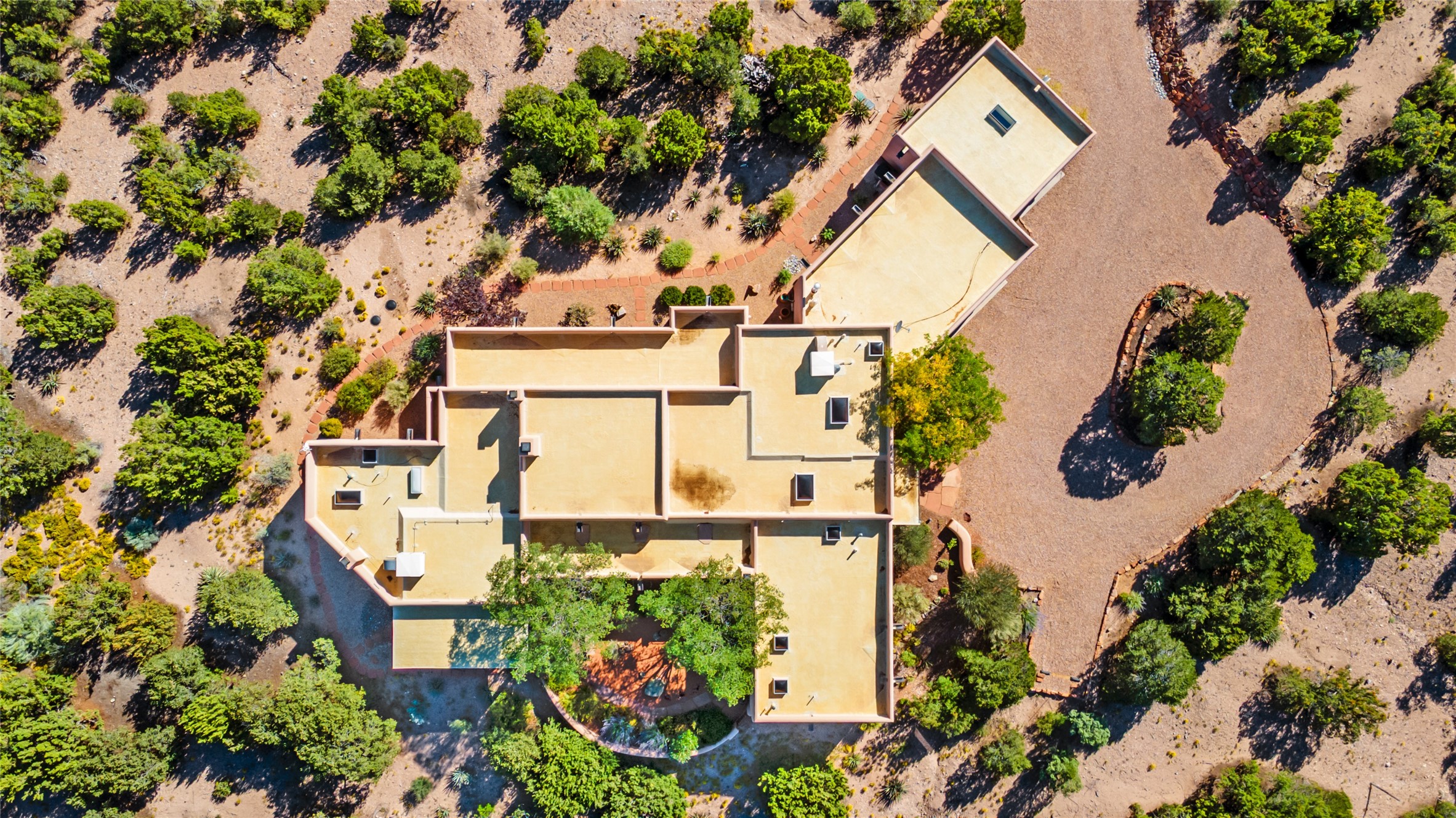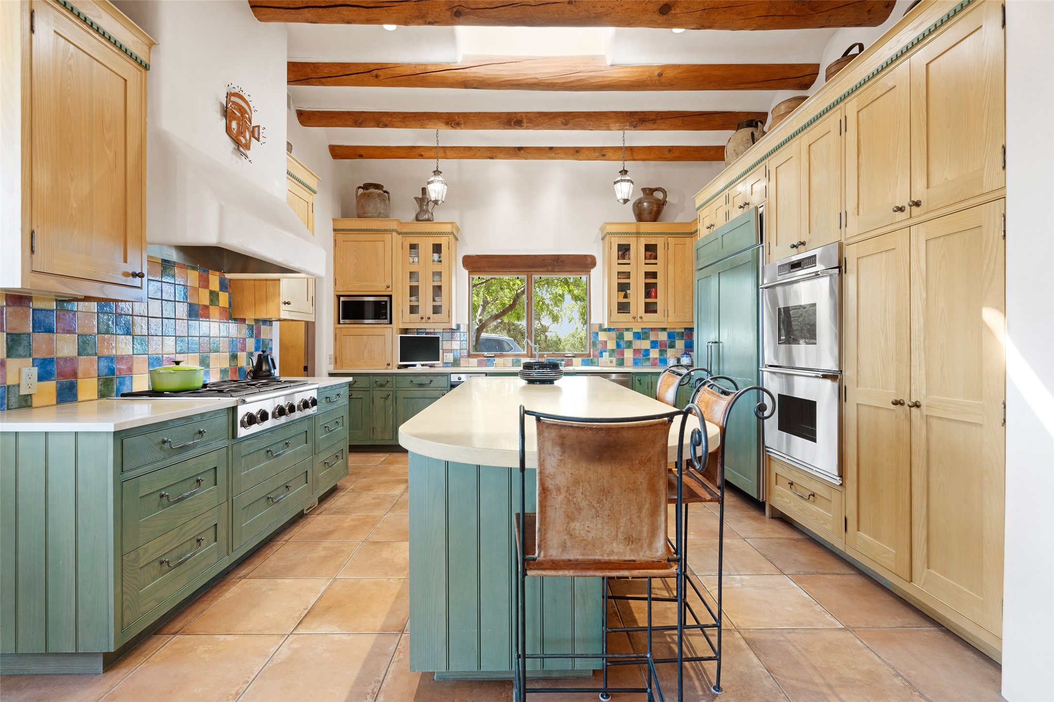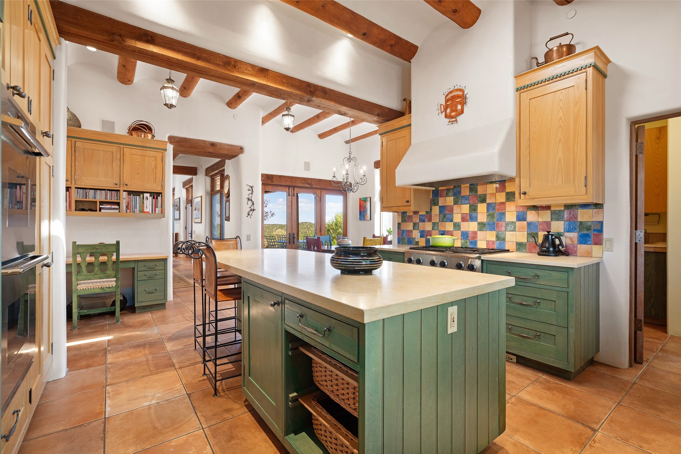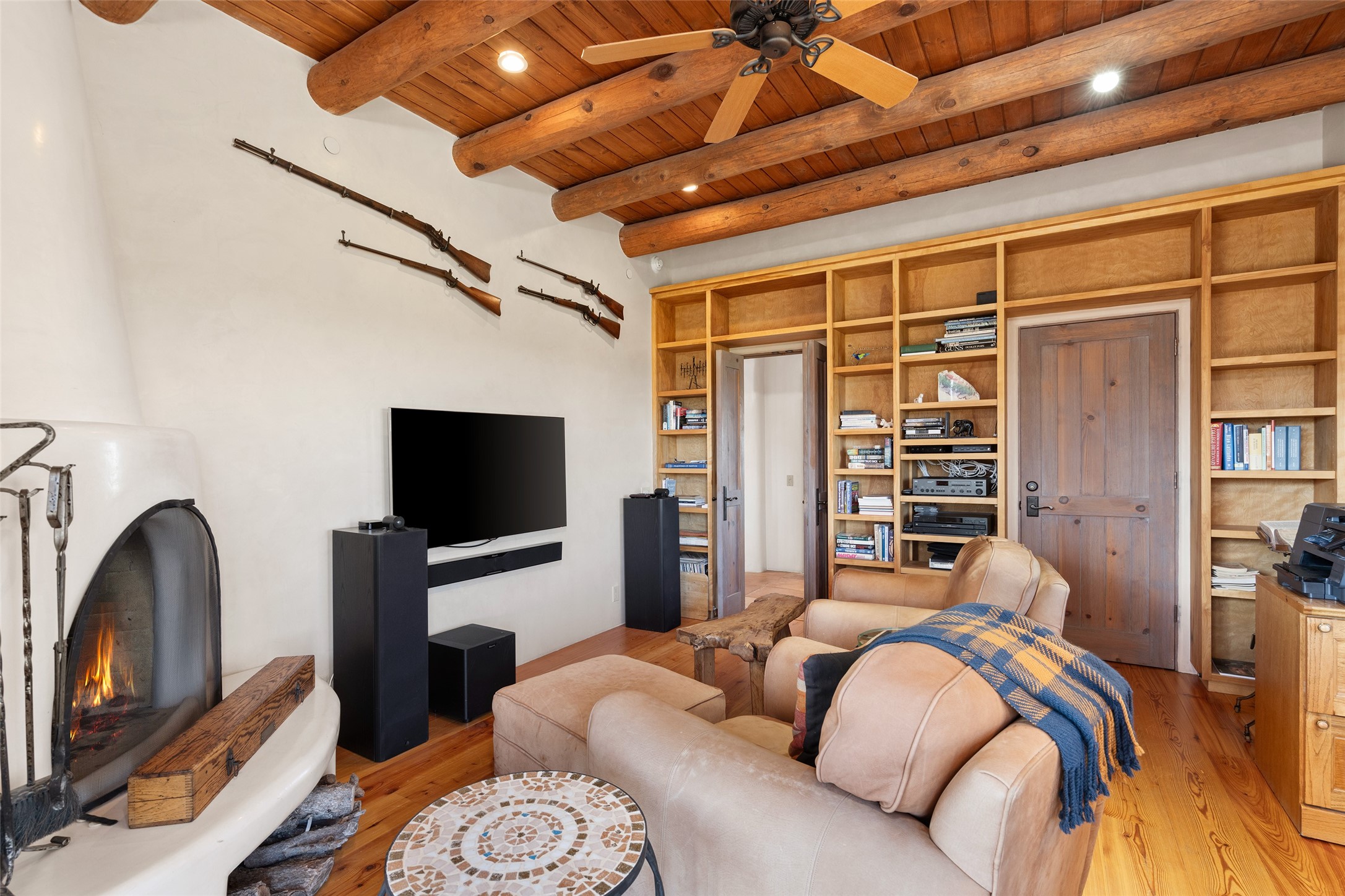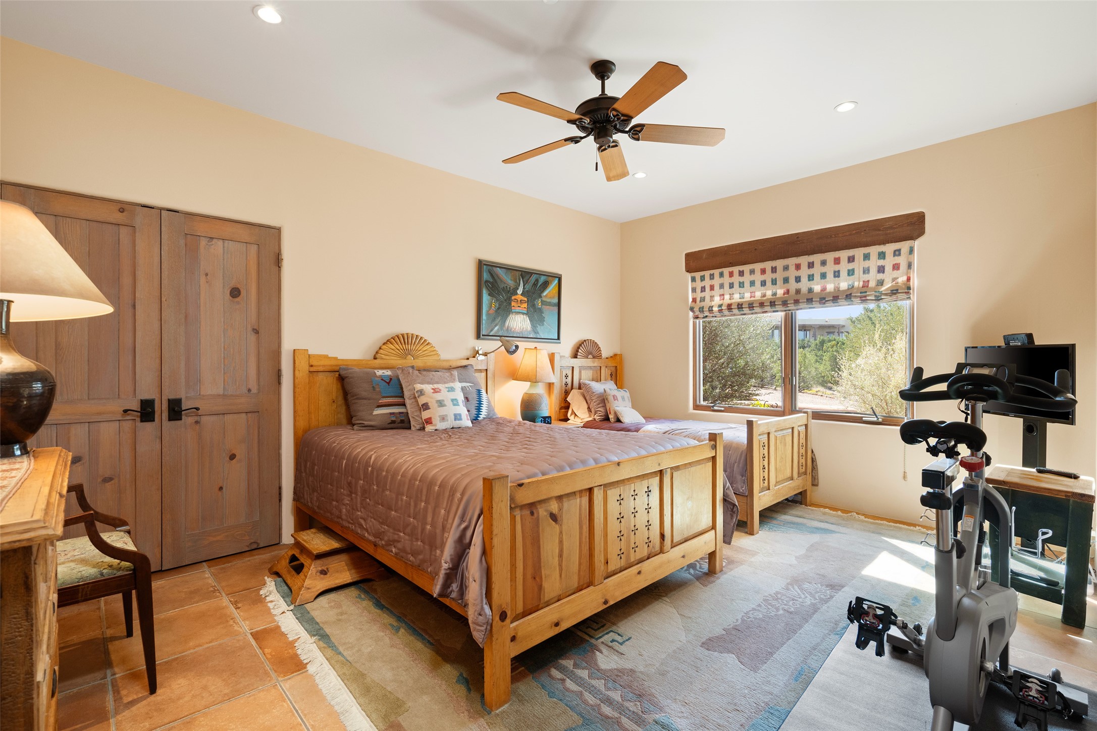 SWEEPING VIEWS OF BOTH EASTERN AND WESTERN MOUNTAIN RANGES ON AN ELEVATED LOT IN SUNDANCE ESTATES WHERE THE NIGHT SKY IS JUST AS BEAUTIFUL AS THE DAY. Designed by Richard Martinez to be a haven with warm architectural accents and superb Santa Fe touches. Set in the coveted Sundance Estates neighborhood, this stunning 3-bedroom, 3-bath home embodies timeless Santa Fe style. Absolutely full of natural light, this 3,351 sqft residence sits on 2.5 acres of mature landscaping, offering peace, privacy, and natural beauty. Inside, traditional vigas, beams, and coved ceilings are paired with creamy plaster walls, wood and tile floors, and radiant heating throughout. Four wood-burning fireplaces anchor the warm and inviting living spaces, while the gourmet kitchen is a delightful and colorful place to cook together or just cozy up with a cup of coffee and the newspaper. It features high-end appliances, and scads of counterspace and storage. Formal and informal dining areas, and seamless flow to outdoor dining patios give this residence high appeal for entertaining. The primary suite offers serenity with breathtaking views, while guest accommodations have their own wing and are equally welcoming with views and privacy. Outdoor living is elevated with multiple patios, a hot tub, and manicured grounds designed for relaxation and entertaining. A 3-car garage and additional driveway parking for 5 vehicles provide convenience. The third bay of the garage was built as a fabulous studio space and could be an art studio, gym, yoga spot, crafts room - you name it! This property is a masterful balance of traditional craftsmanship and modern comfort - an exceptional haven for refined easy Southwestern living.