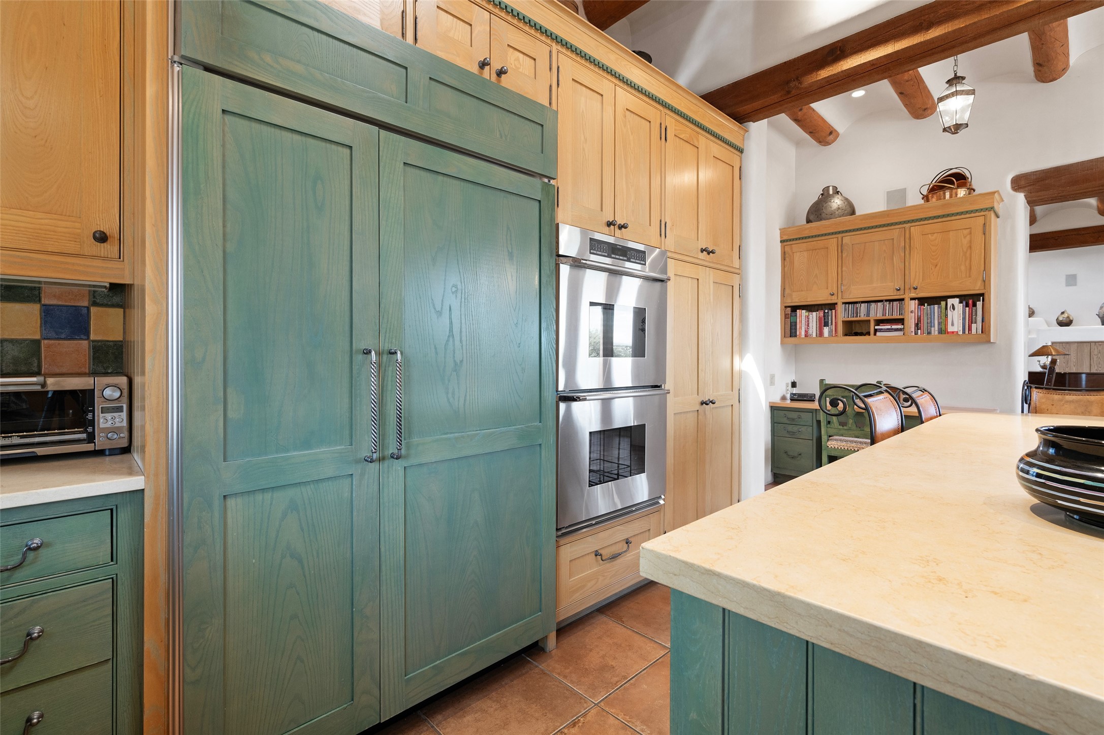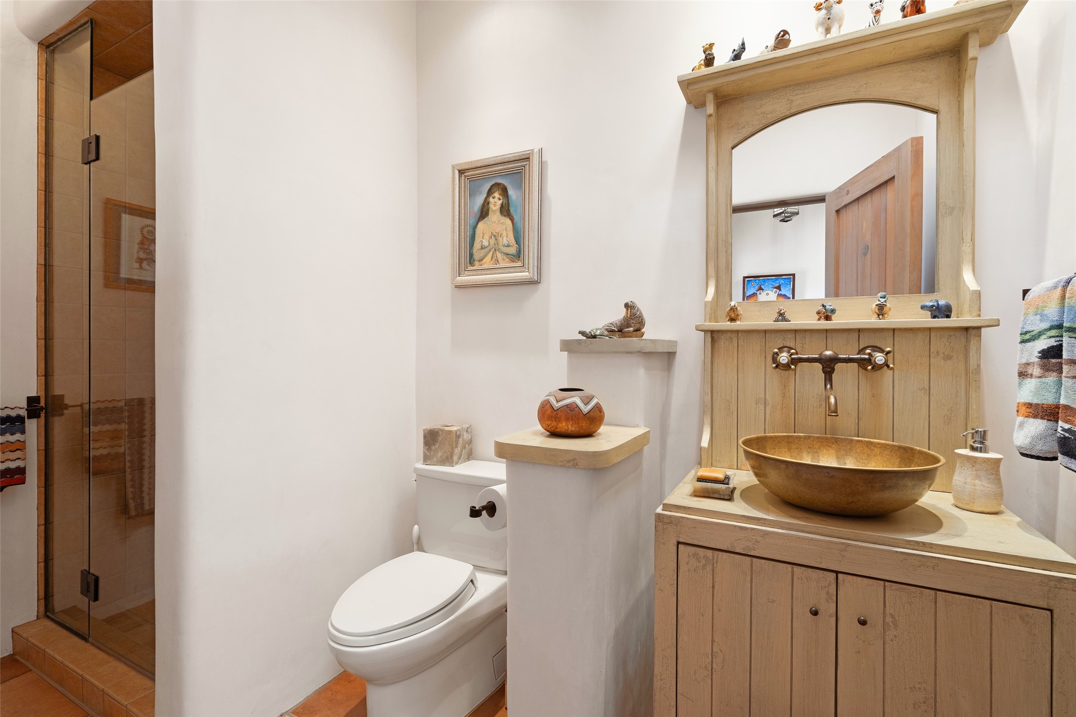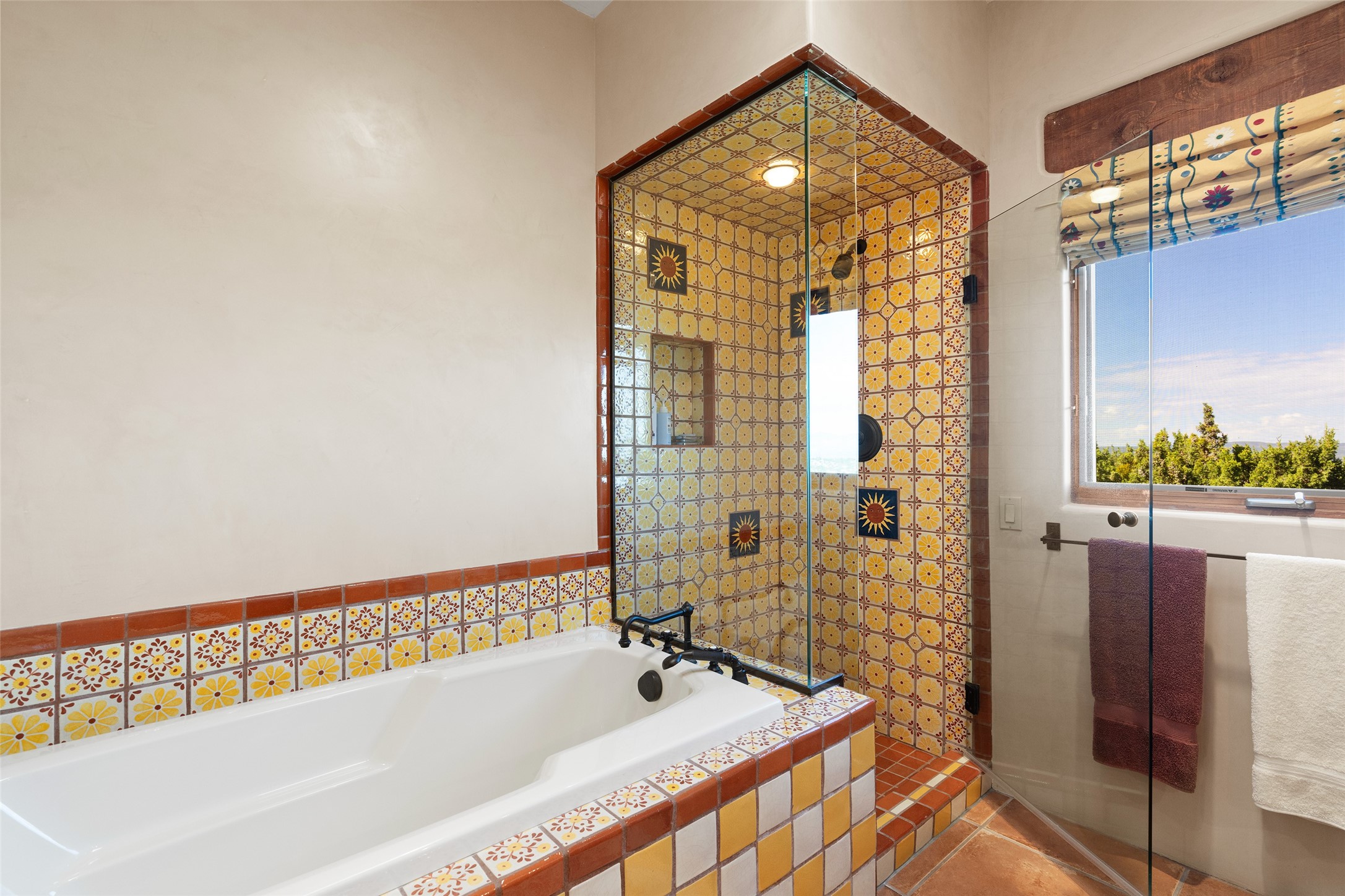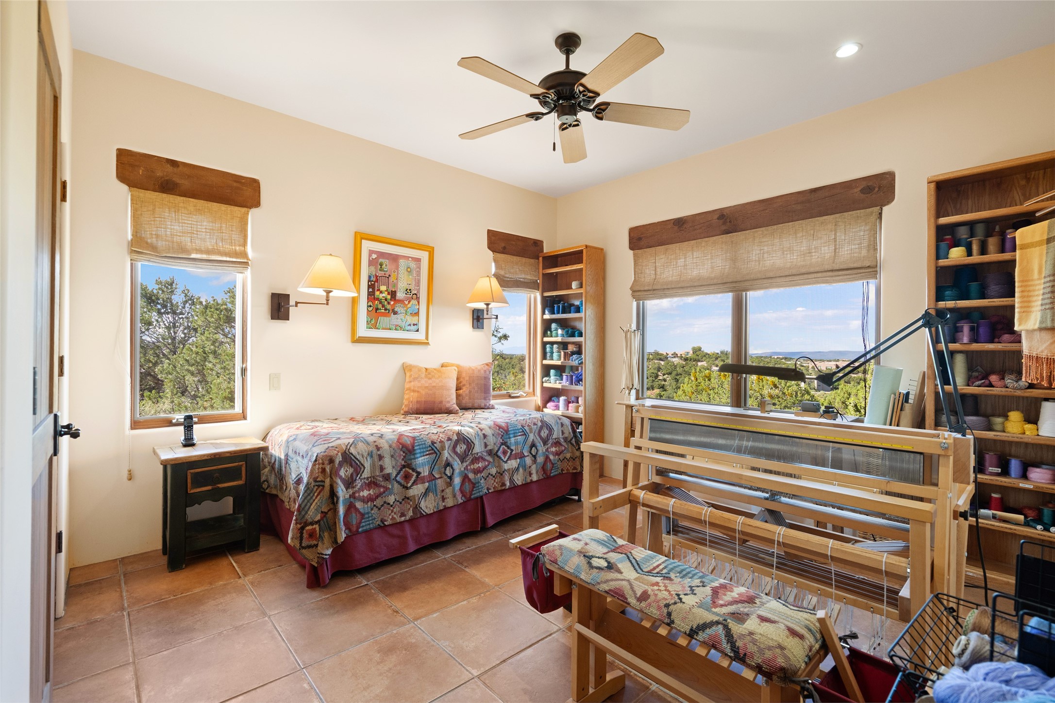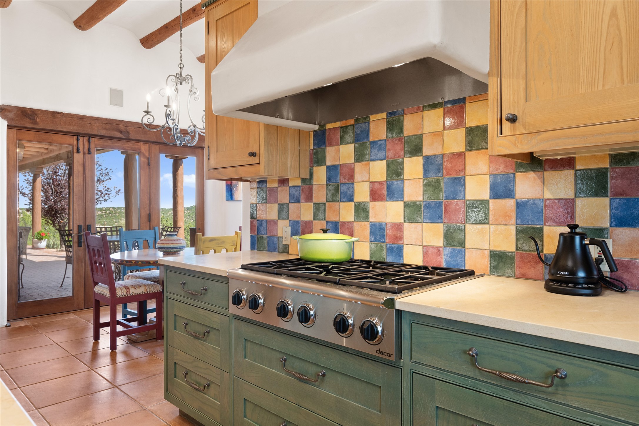 SWEEPING VIEWS OF BOTH EASTERN AND WESTERN MOUNTAIN RANGES ON AN ELEVATED LOT IN SUNDANCE ESTATES WHERE THE NIGHT SKY IS JUST AS BEAUTIFUL AS THE DAY. Designed by Richard Martinez to be a haven with warm architectural accents and superb Santa Fe touches. Set in the coveted Sundance Estates neighborhood, this stunning 3-bedroom, 3-bath home embodies timeless Santa Fe style. Absolutely full of natural light, this 3,351 sqft residence sits on 2.5 acres of mature landscaping, offering peace, privacy, and natural beauty. Inside, traditional vigas, beams, and coved ceilings are paired with creamy plaster walls, wood and tile floors, and radiant heating throughout. Four wood-burning fireplaces anchor the warm and inviting living spaces, while the gourmet kitchen is a delightful and colorful place to cook together or just cozy up with a cup of coffee and the newspaper. It features high-end appliances, and scads of counterspace and storage. Formal and informal dining areas, and seamless flow to outdoor dining patios give this residence high appeal for entertaining. The primary suite offers serenity with breathtaking views, while guest accommodations have their own wing and are equally welcoming with views and privacy. Outdoor living is elevated with multiple patios, a hot tub, and manicured grounds designed for relaxation and entertaining. A 3-car garage and additional driveway parking for 5 vehicles provide convenience. The third bay of the garage was built as a fabulous studio space and could be an art studio, gym, yoga spot, crafts room - you name it! This property is a masterful balance of traditional craftsmanship and modern comfort - an exceptional haven for refined easy Southwestern living.