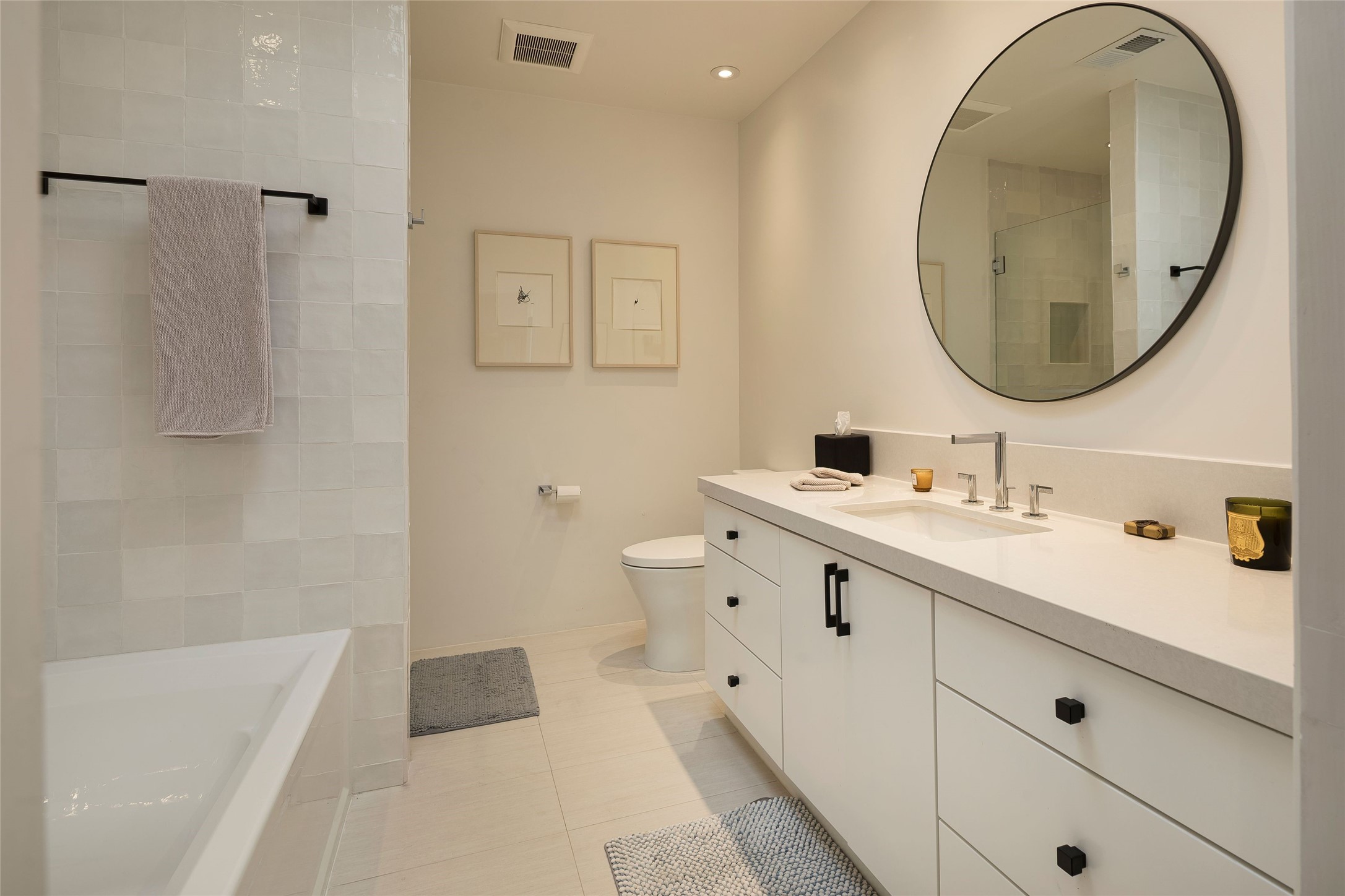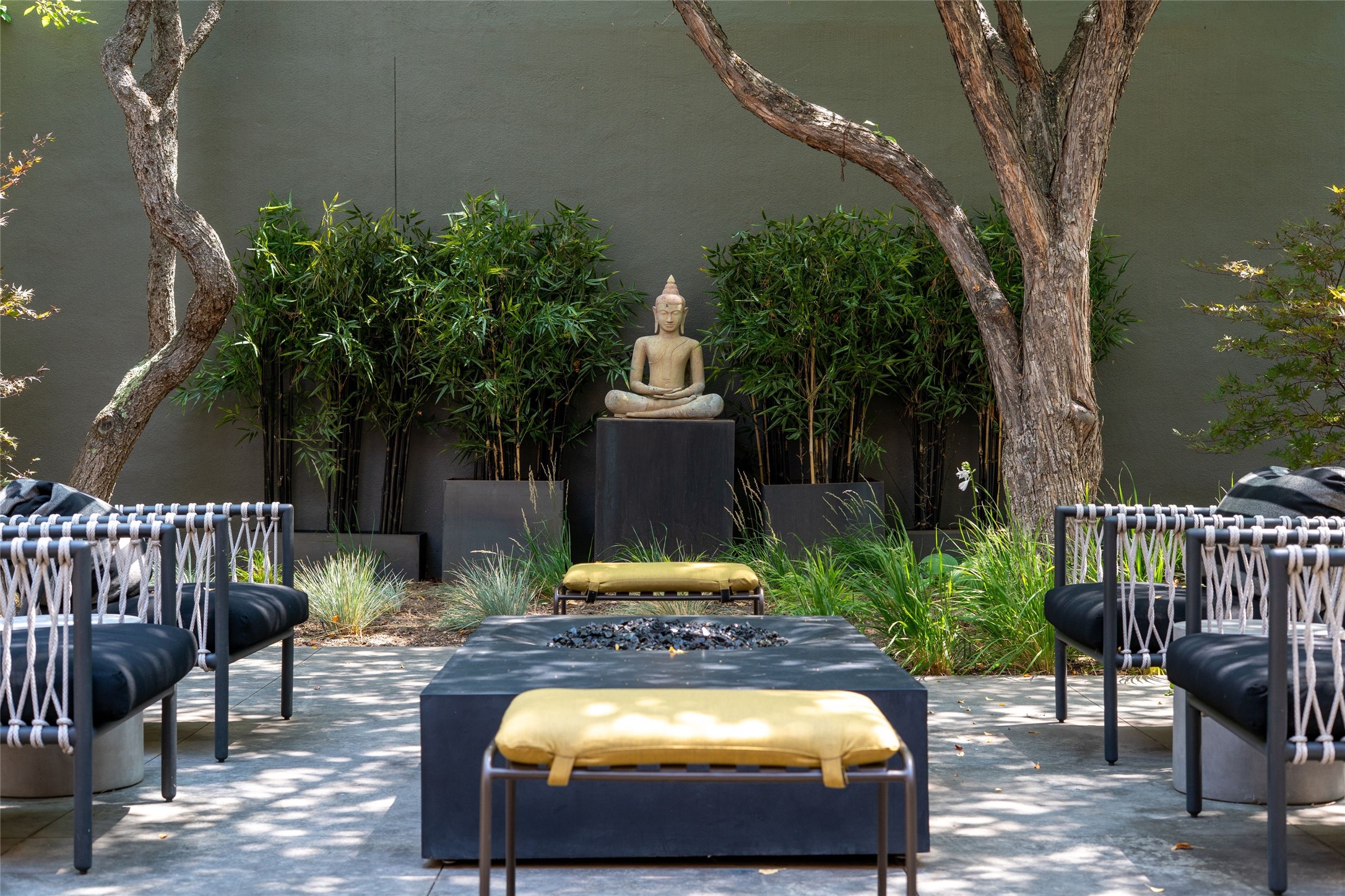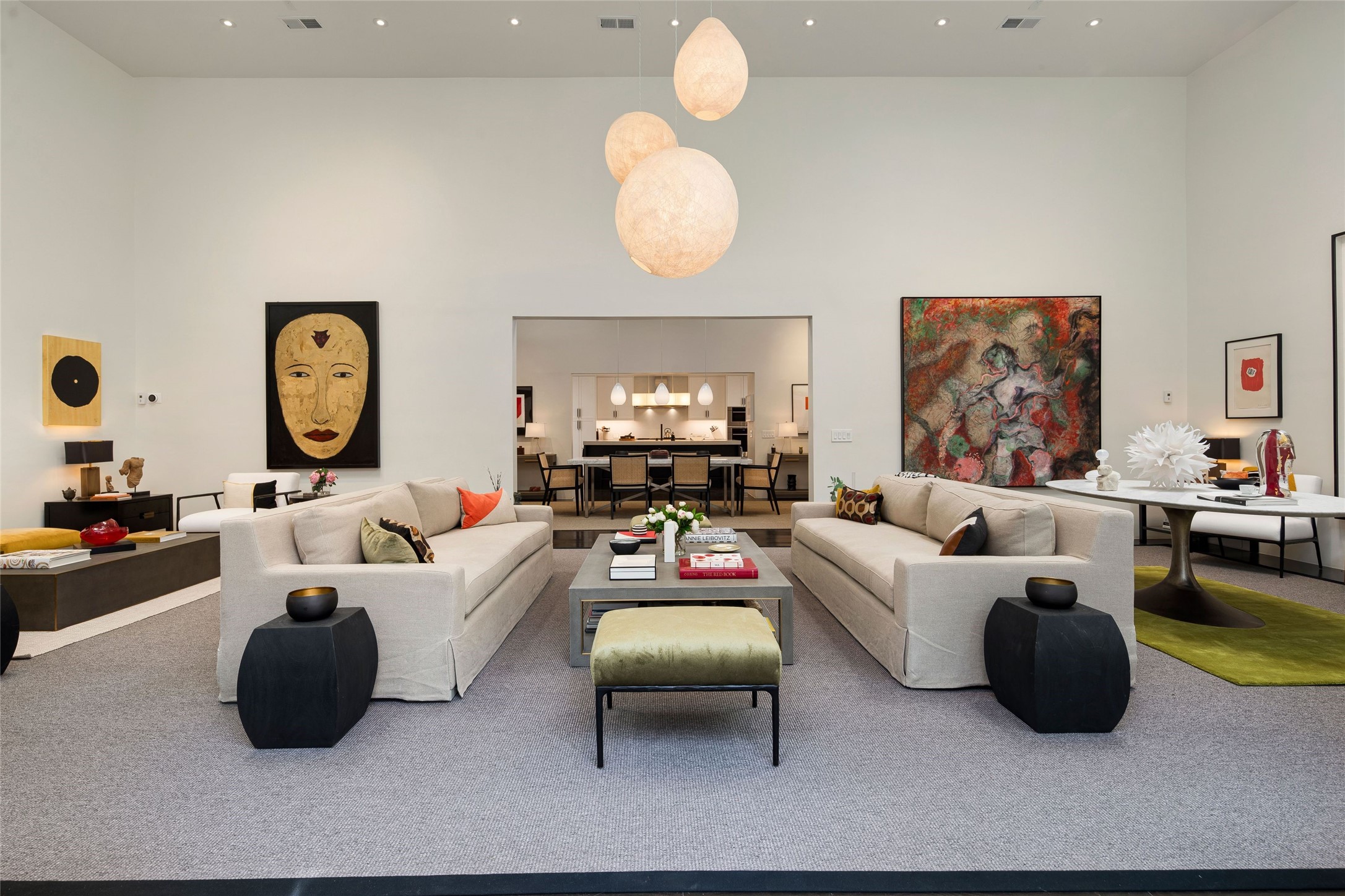 Exquisite Los Miradores 4-bedroom, 4.5-bath condo, where modern elegance meets artistic finesse. This stunning residence was reimagined and remodeled in 2020-2021, showcasing a balanced blend of wood, steel, glass, and stone that appeals to the most discerning tastes. As you enter, you'll be greeted by an impressive entry gallery with a clerestory window that bathes the space in natural light. The formal dining room, complemented by a wet bar, invites you to host dinner parties and soirees. Two-story grand living room includes sliding glass doors flanked by sidelights connecting to an entertainment patio complete with a gas fire pit and a contemporary steel pergola, ideal for alfresco dining under the New Mexican skies. Deluxe gourmet kitchen, featuring custom cabinetry, elegant quartz countertops, and top-of-the-line appliances, including a Wolf six-burner cooktop with griddle, Wolf wall oven, and Sub-Zero side-by-side refrigerator/freezer. Expansive center island and large breakfast area make this kitchen a culinary gathering area. The luxurious owner's suite, designed as a private sanctuary with a spa-like bath promises relaxation and tranquility. A guest suite is conveniently located on the ground floor, alongside a dedicated office and media room. Upper level, with two additional suites, each with en-suite baths, provide privacy for family or guests. High-walled patios and beautifully landscaped gardens. An oversized two-car garage ensures ample space for your vehicles and storage needs. The gated community of Los Miradores offers many amenities, including a seasonal pool, workout facility, tennis court and security patrol.