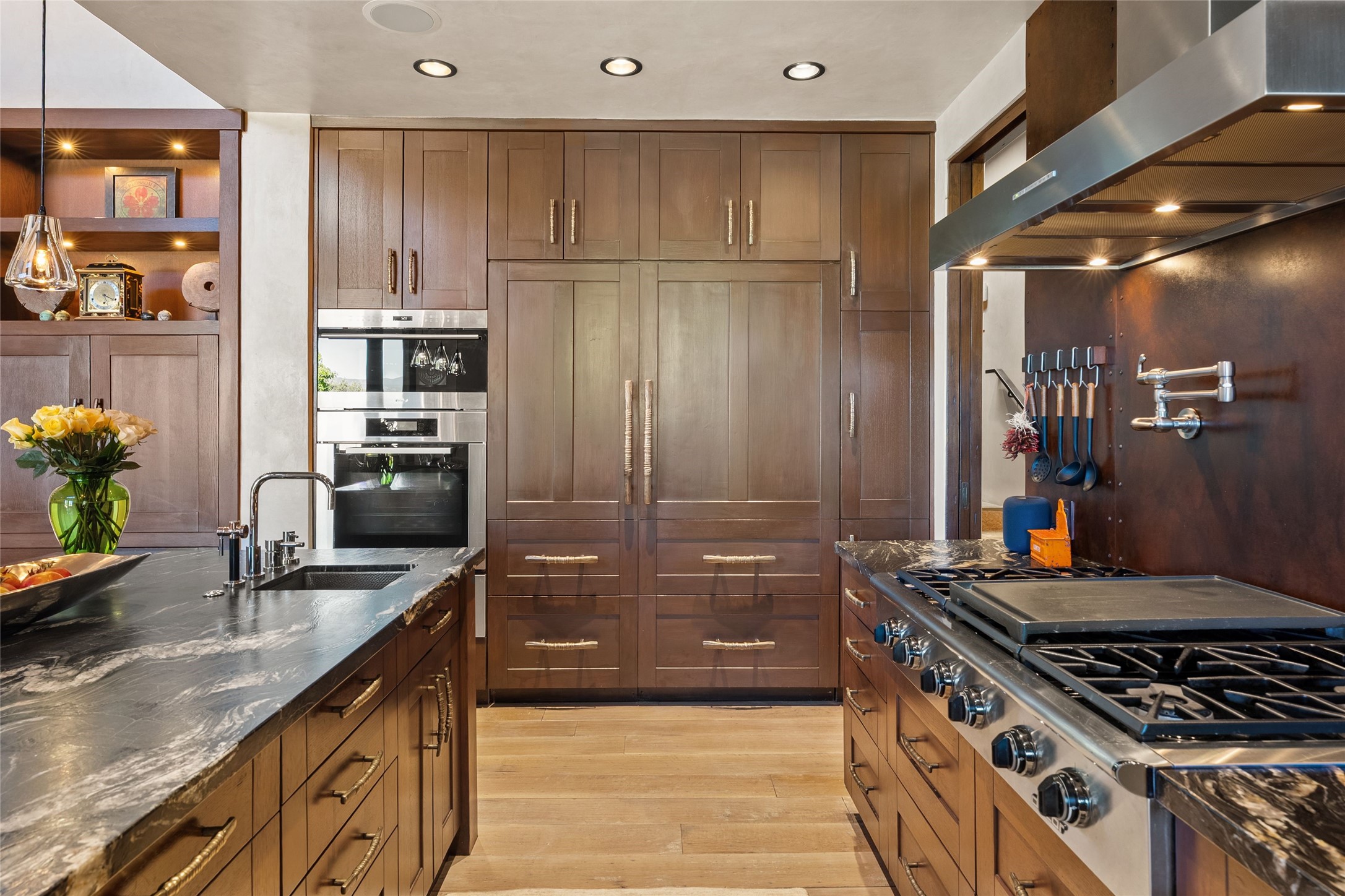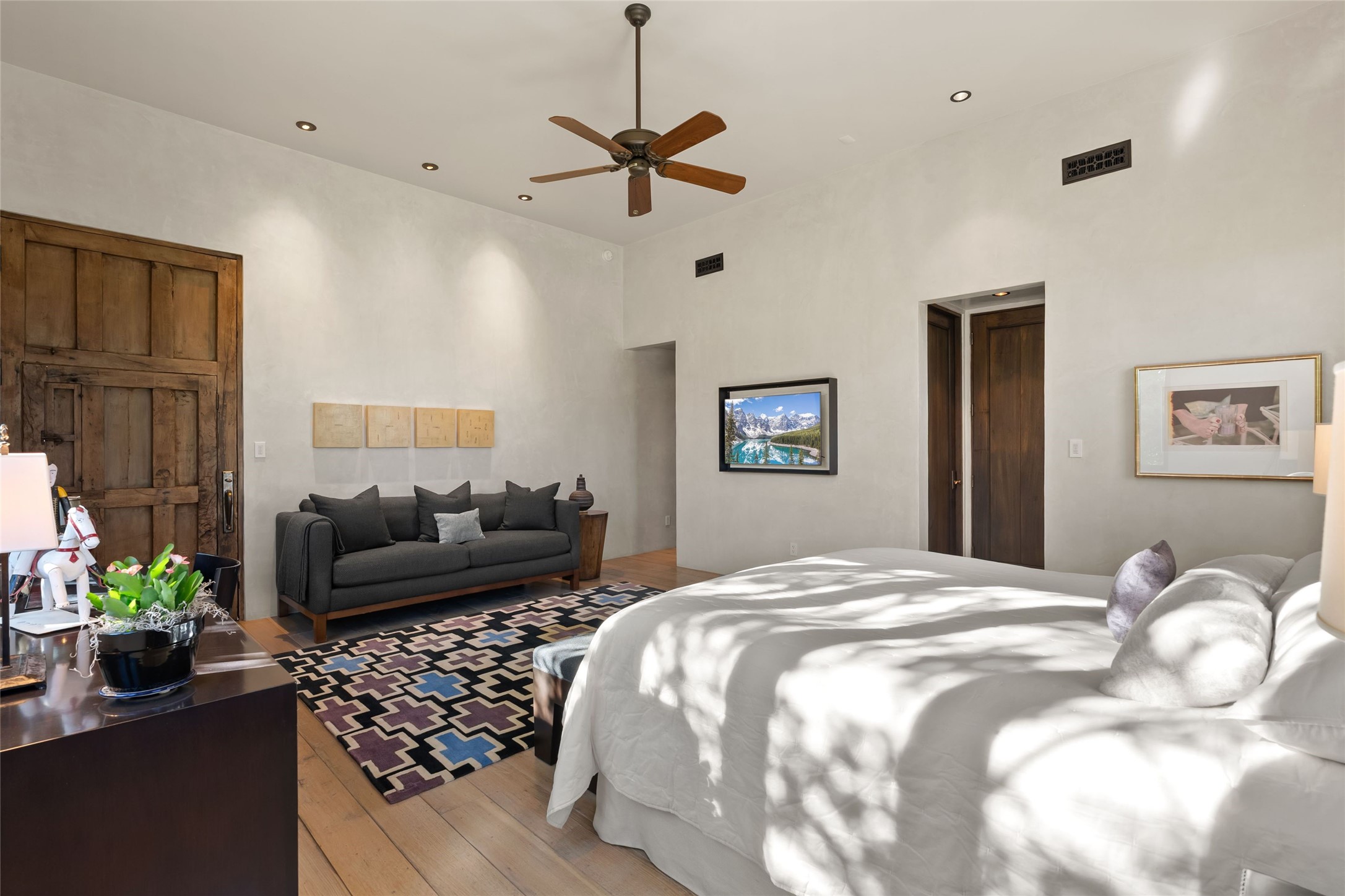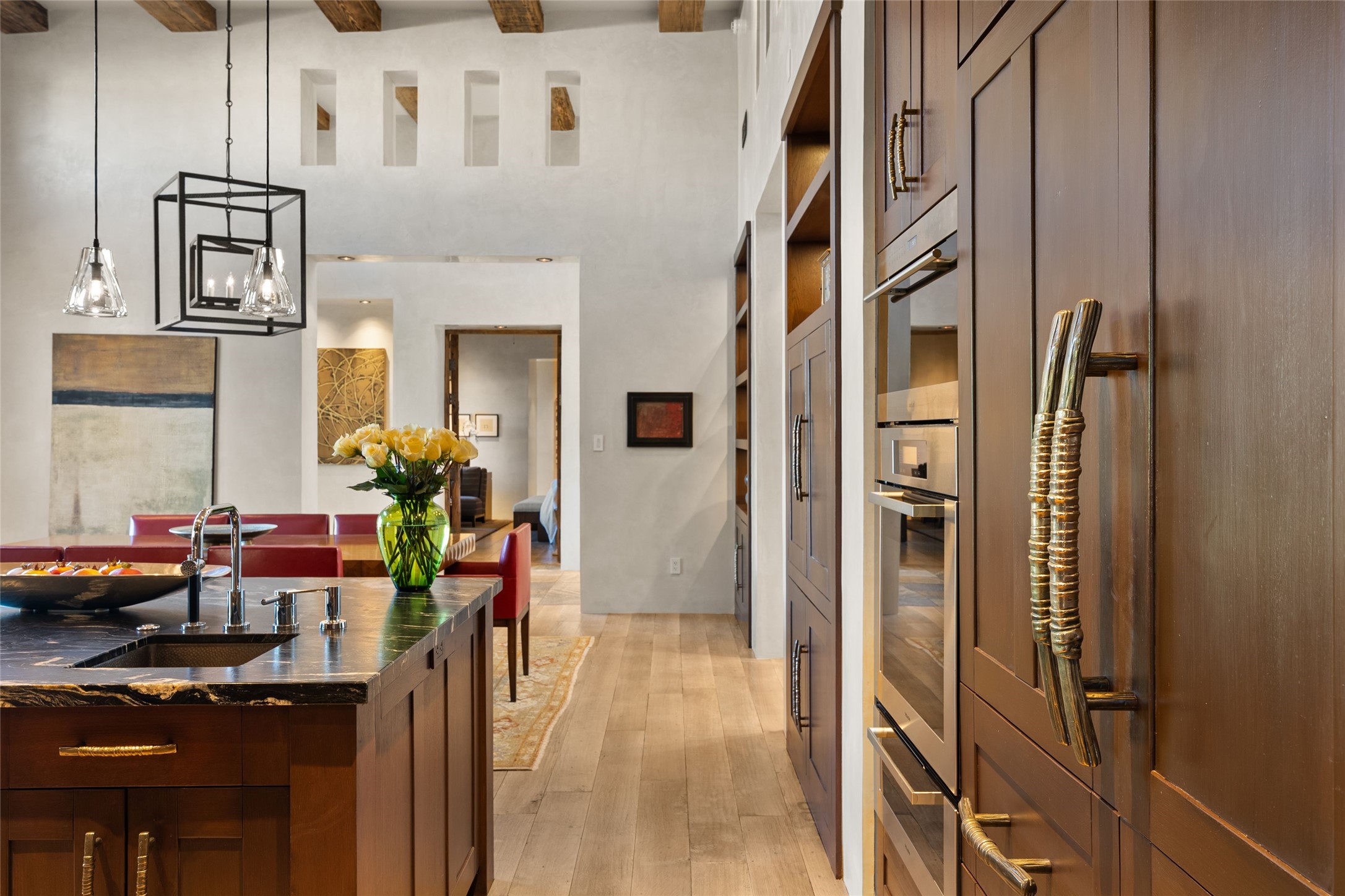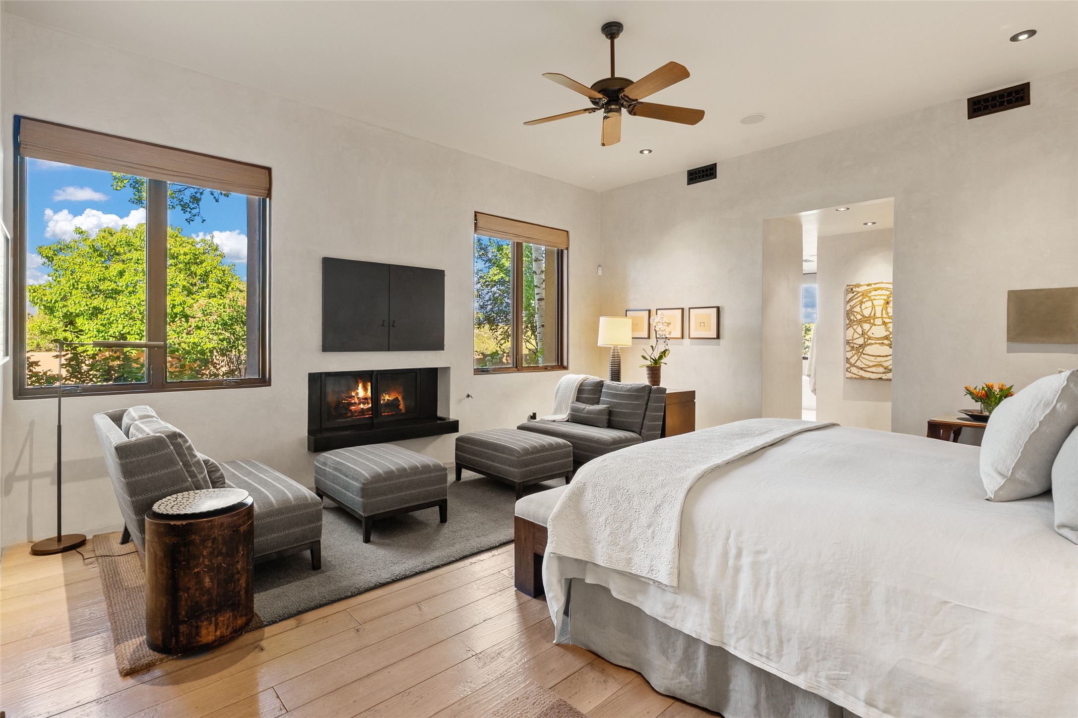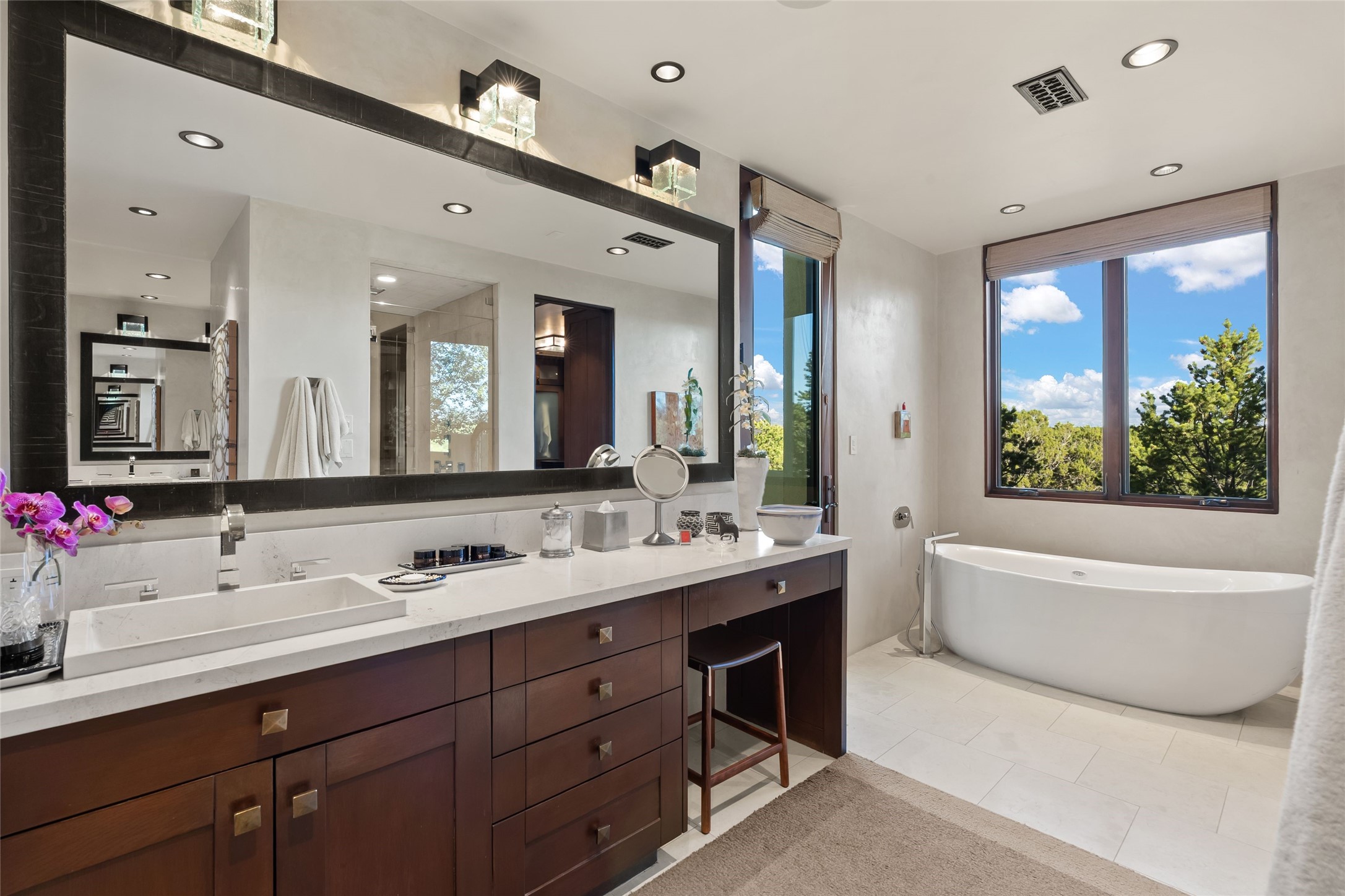 The heart of the home flows seamlessly from the stunning Rumford fireplace to the gourmet kitchen with professional-grade appliances to an entertainer's portal, where you'll find yourself lingering over morning coffee or evening wine, mesmerized by the mountain vistas. Three thoughtfully designed bedrooms include a luxurious master retreat and private guest suite. Premium finishes throughout feature diamond plaster and custom lighting that creates pure magic at the golden hour. When you're ready, downtown Santa Fe's acclaimed restaurants and galleries await just minutes away. This home is more than luxury living--it's a lifestyle immersed in beauty, nature, and the unique spirit of Santa Fe, where luxury meets the land of enchantment.