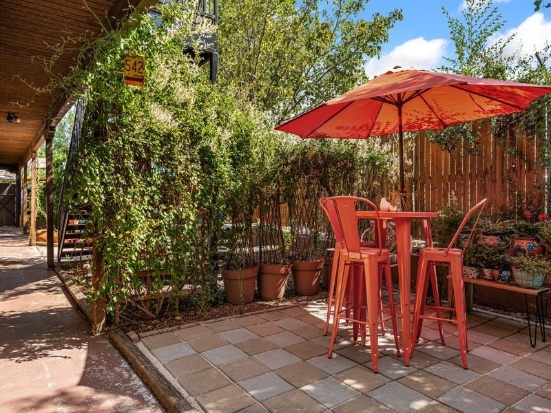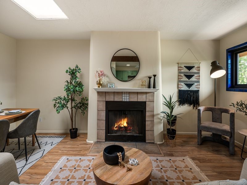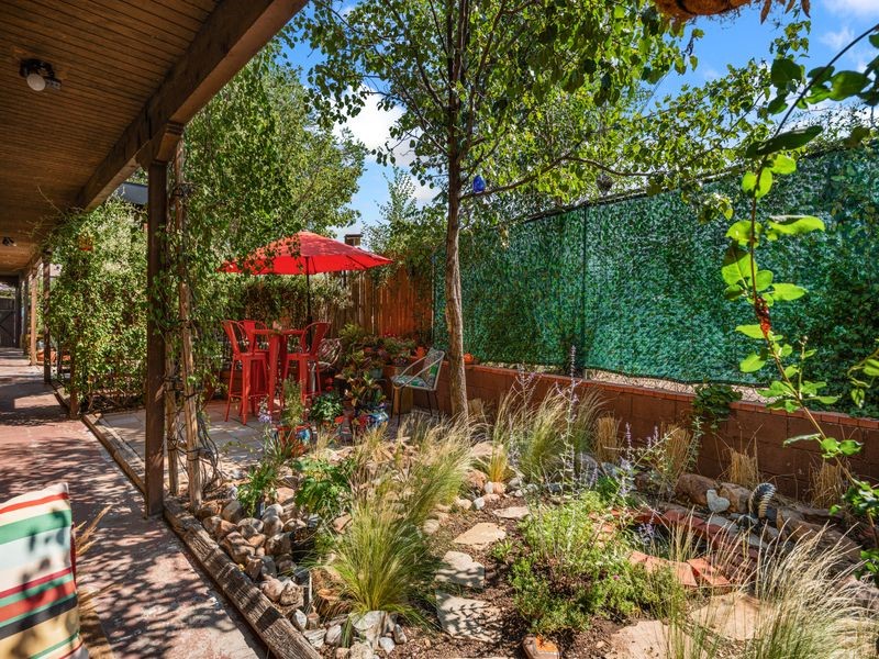 Tucked away on a quiet dead-end street, this rare 2-bedroom, 1-bath condo is one of only six in a small, well-cared-for community. Surrounded by mature gardens and a peaceful setting, it offers both privacy and convenience, just blocks from the Santa Fe Railyard and historic downtown.