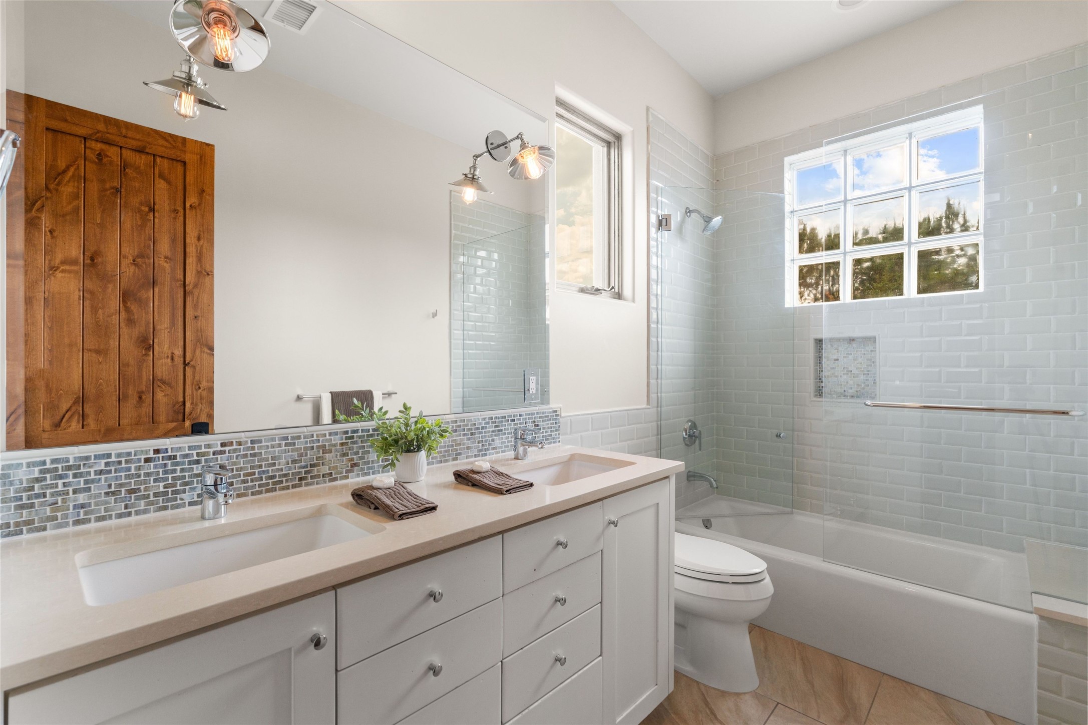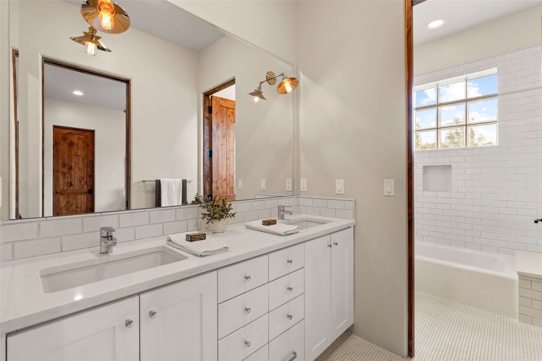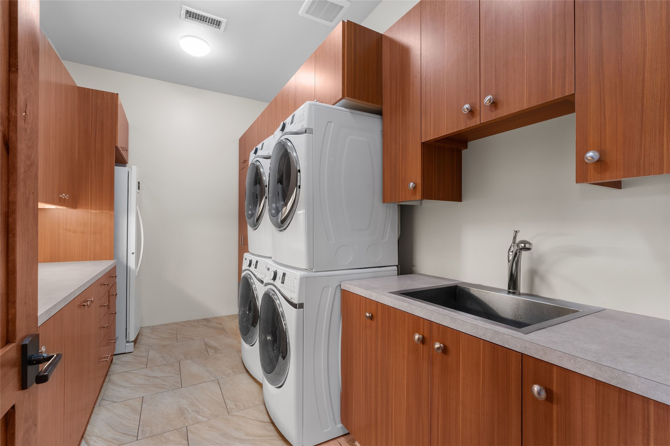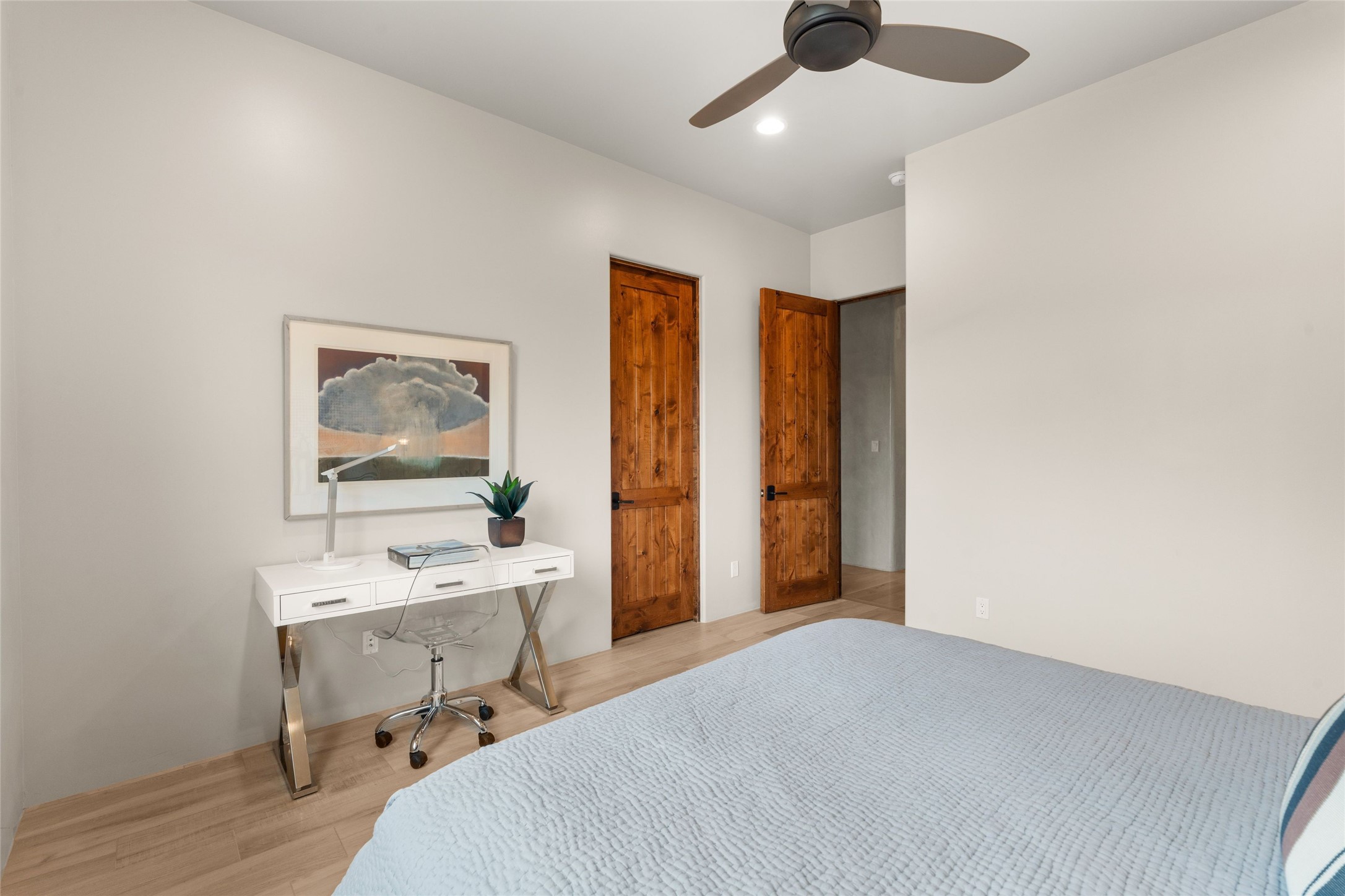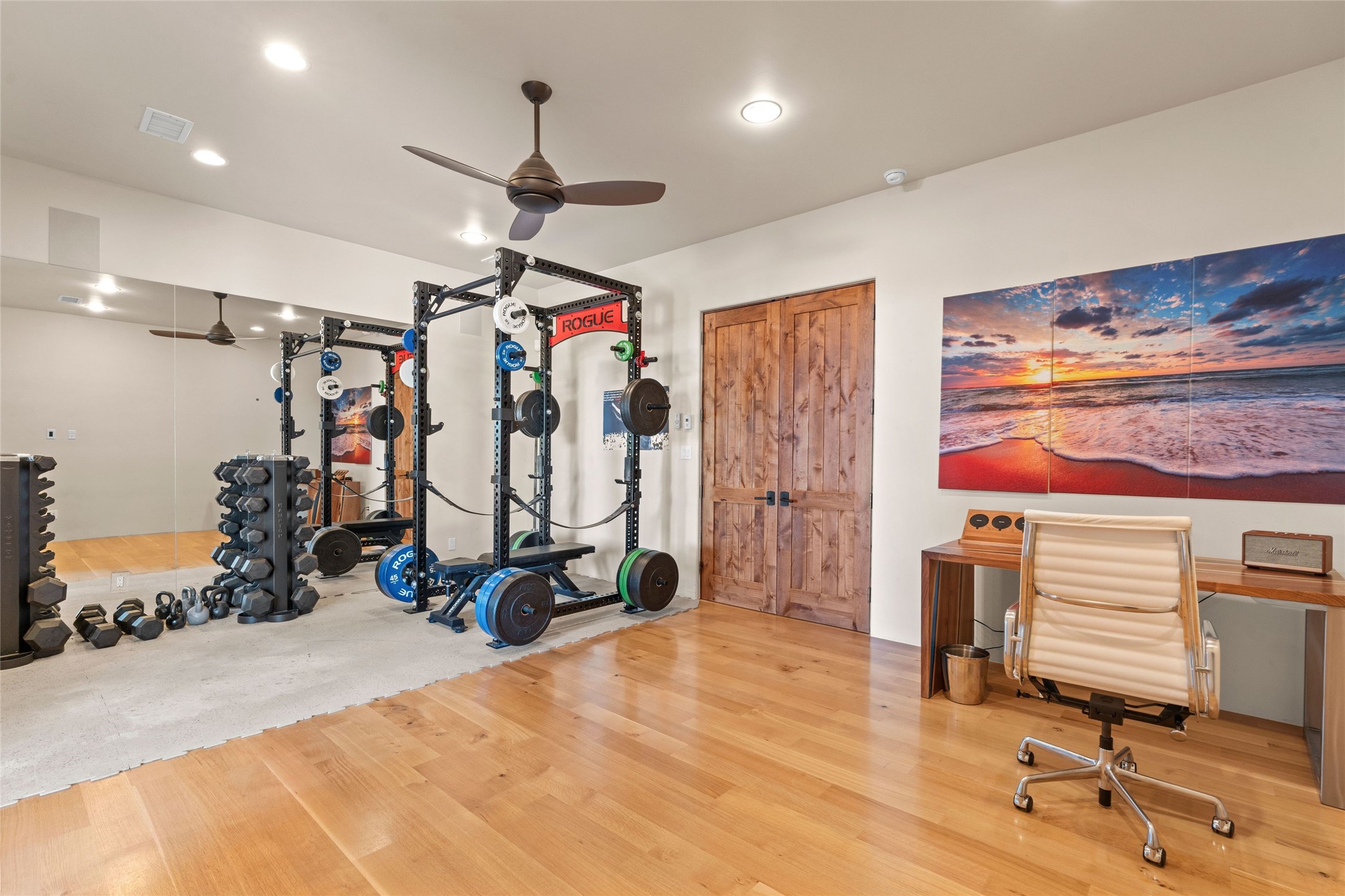 Northern New Mexican style 5-bedroom, 4.5-bath custom-built 5,200 sq. ft. home spanning over 2.5 acres offers panoramic 180-degree views that stretch from the majestic Sangre de Cristo Mountains to the captivating Badlands and Los Alamos. Positioned at the end of a private, gated drive and surrounded by an 8-foot-high coyote fence, this residence is a true entertainer's delight. The open floor plan flows effortlessly into spacious covered and uncovered patios, ideal for hosting both intimate gatherings and grand celebrations. Crafted by Driscoll Construction in 2015, the home showcases bespoke design elements, including custom solid wood doors, white oak flooring, and elegant plaster walls throughout the common areas and primary suite. Enjoy the warmth of three fireplaces, including one on the expansive 1,500 sq. ft. portal, where you can relish both sunrise and sunset vistas. The gourmet kitchen invites culinary creativity with its generous center island, clerestory windows, premium appliances, and double dishwashers. Prioritize wellness with a primary bath steam shower, a 300 sq. ft. gym, an outdoor 6-person sauna, a vegetable garden on drip irrigation, and a fully enclosed chicken coop. Additional highlights include a pitched metal roof, an oversized 3-car garage, photovoltaic solar energy, and rainwater harvesting. Recent upgrades in 2023 encompass new stucco, water filtration, a dog run, and an outdoor grill. Enjoy convenient access to downtown Santa Fe, all while embracing the serene beauty of this exceptional property.