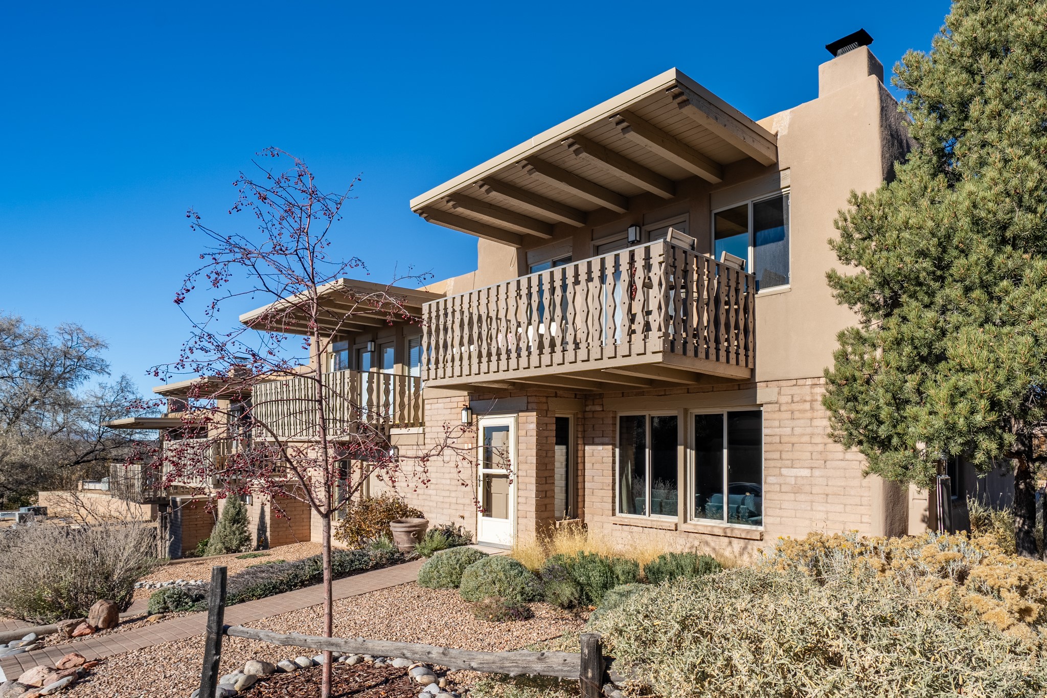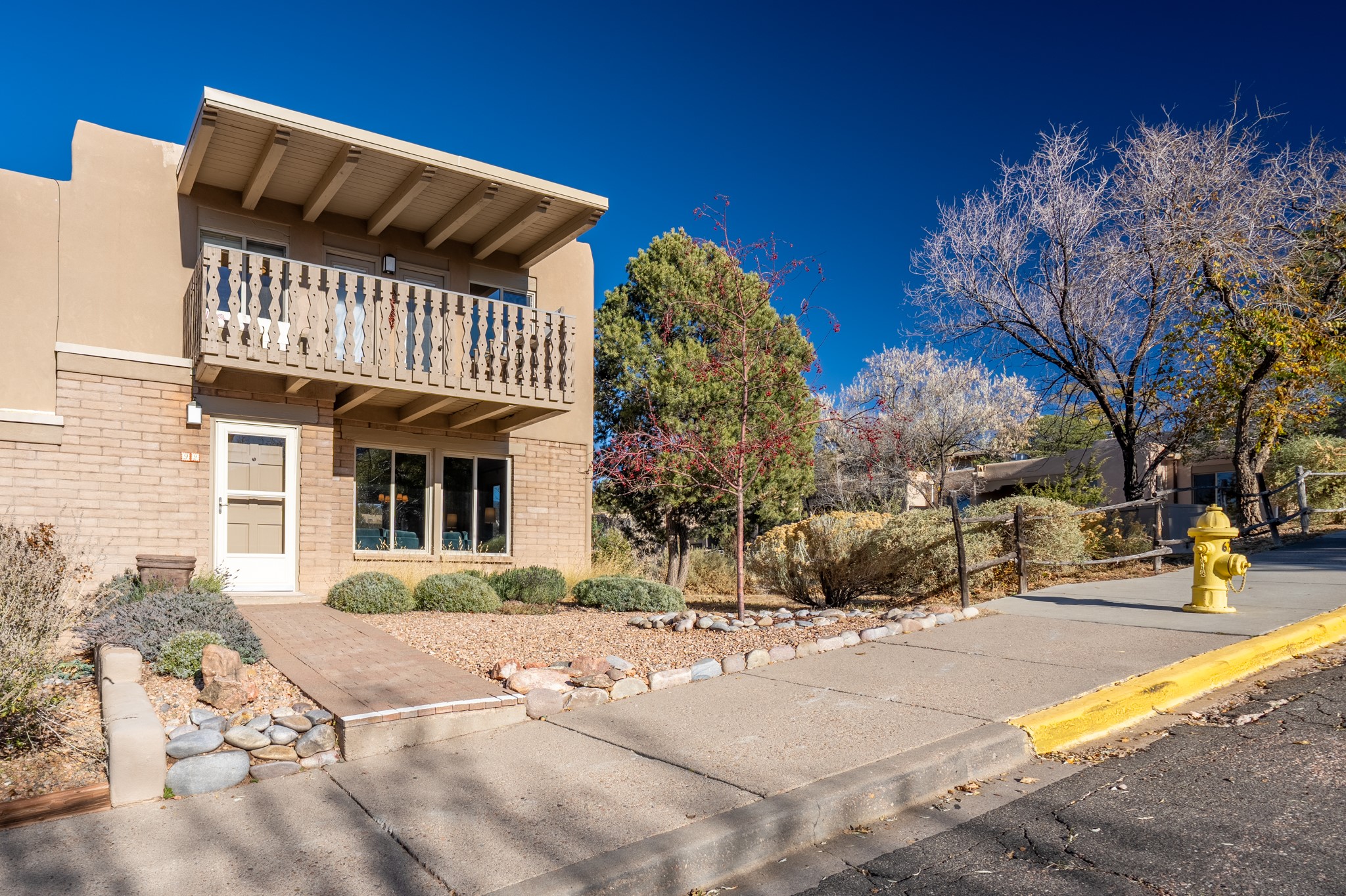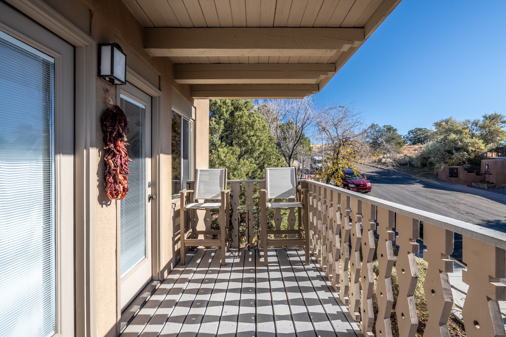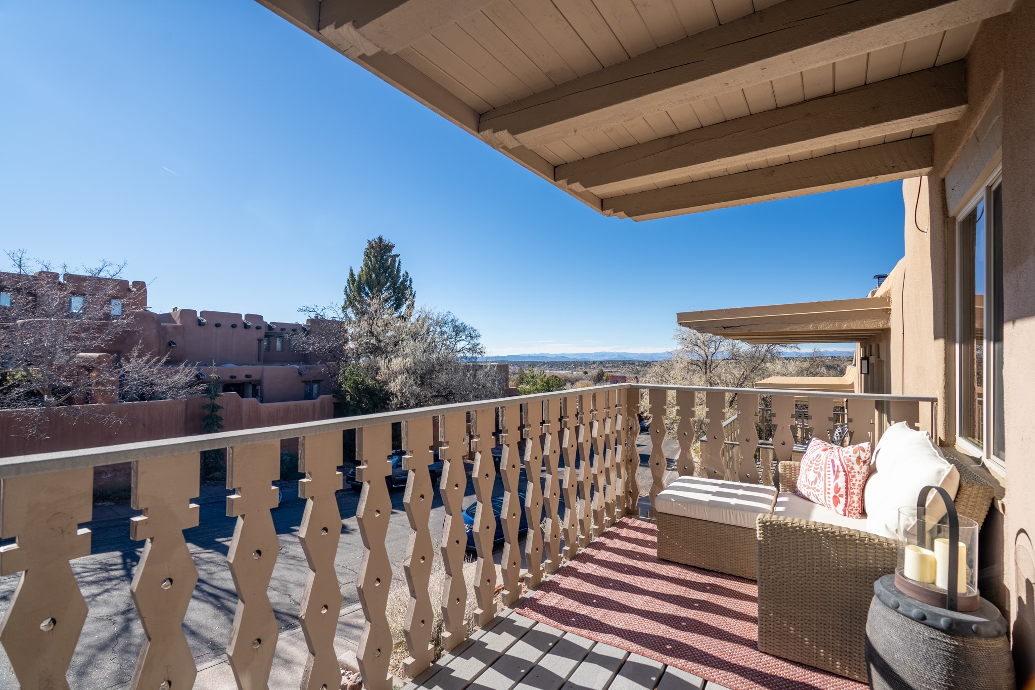 Discover a beautifully transformed end-unit residence just moments from the Santa Fe Plaza, Canyon Road, Fort Marcy Park, and miles of scenic walking trails. This light-filled, open-concept home offers effortless living, plentiful parking, and two private outdoor spaces with sweeping mountain views, including breathtaking Jemez sunset views from the upstairs balcony.