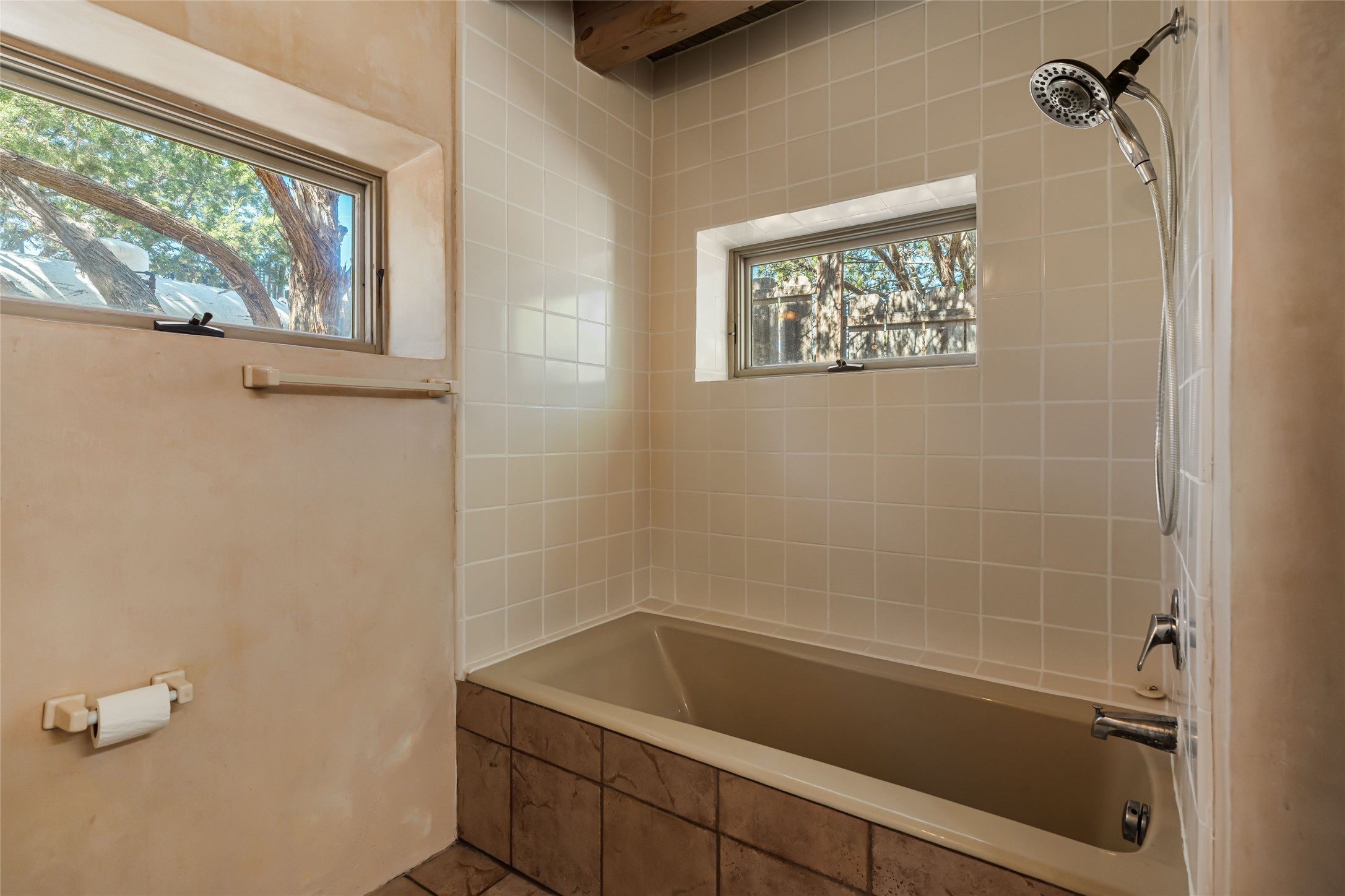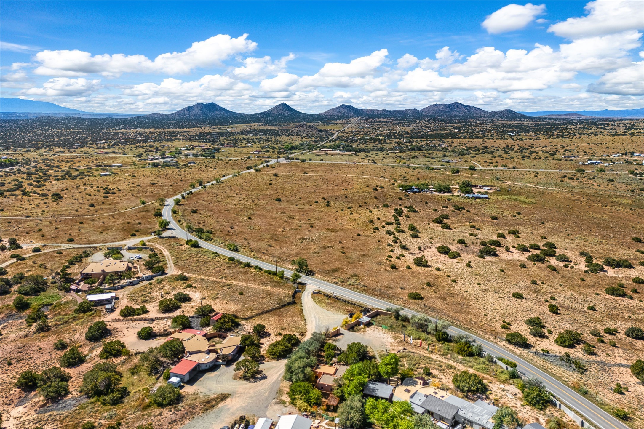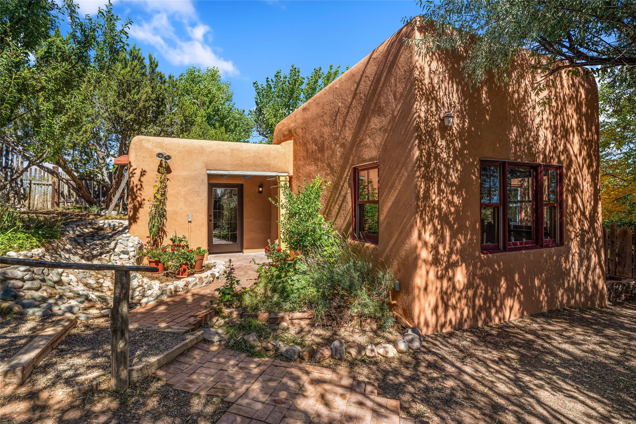 Set on nearly 6 acres of natural beauty, this hand-crafted adobe home by Jerry West offers a lifestyle rooted in nature and creativity. Part of a residential community, the grounds feature an orchard, shade trees, and meandering trails that invite exploration, quiet contemplation, or nature gazing. Two private yards extend your living space outdoors, ideal for gardens or simply enjoying the peace of the desert landscape. Inside, the 1-bedroom, 1-bath home blends artistry and function. The open plan living area connects to a kitchen and dining space with a handcrafted table, bench, and a restored antique tin-and-glass chandelier by Maurice Dixon. The bedroom offers warmth and charm with an adobe fireplace, handcrafted trastero cupboard, blanket chest, and two closets. Practical amenities include two attached storage rooms and private parking for two vehicles. A newer well and well house serve the community, ensuring both sustainability and convenience. Located just off NM State Hwy 14 at the Lone Butte General Store, the property offers easy access to downtown Santa Fe while retaining a retreat-like setting. This is a home where creativity abounds, and nature is just outside your door.