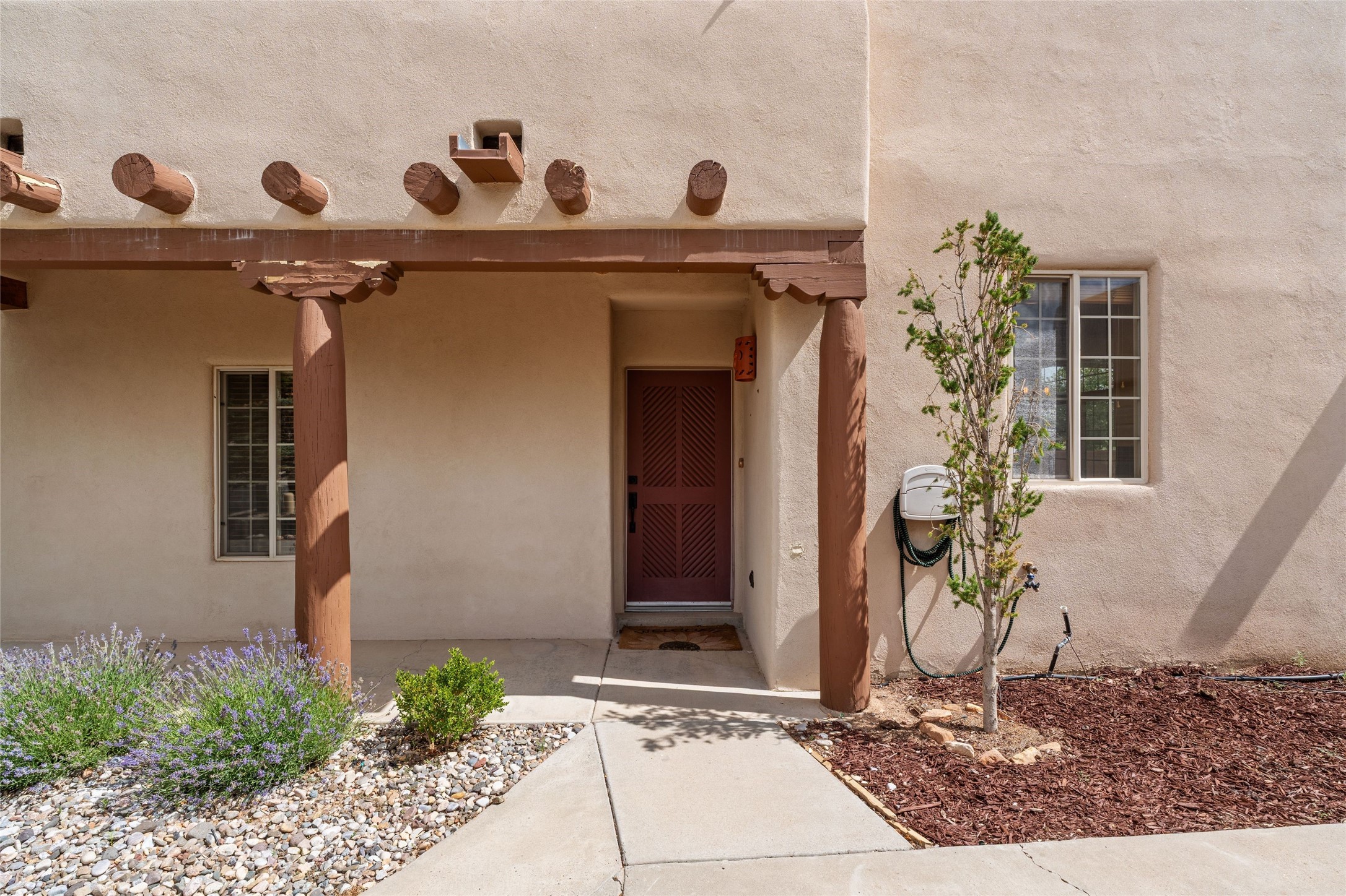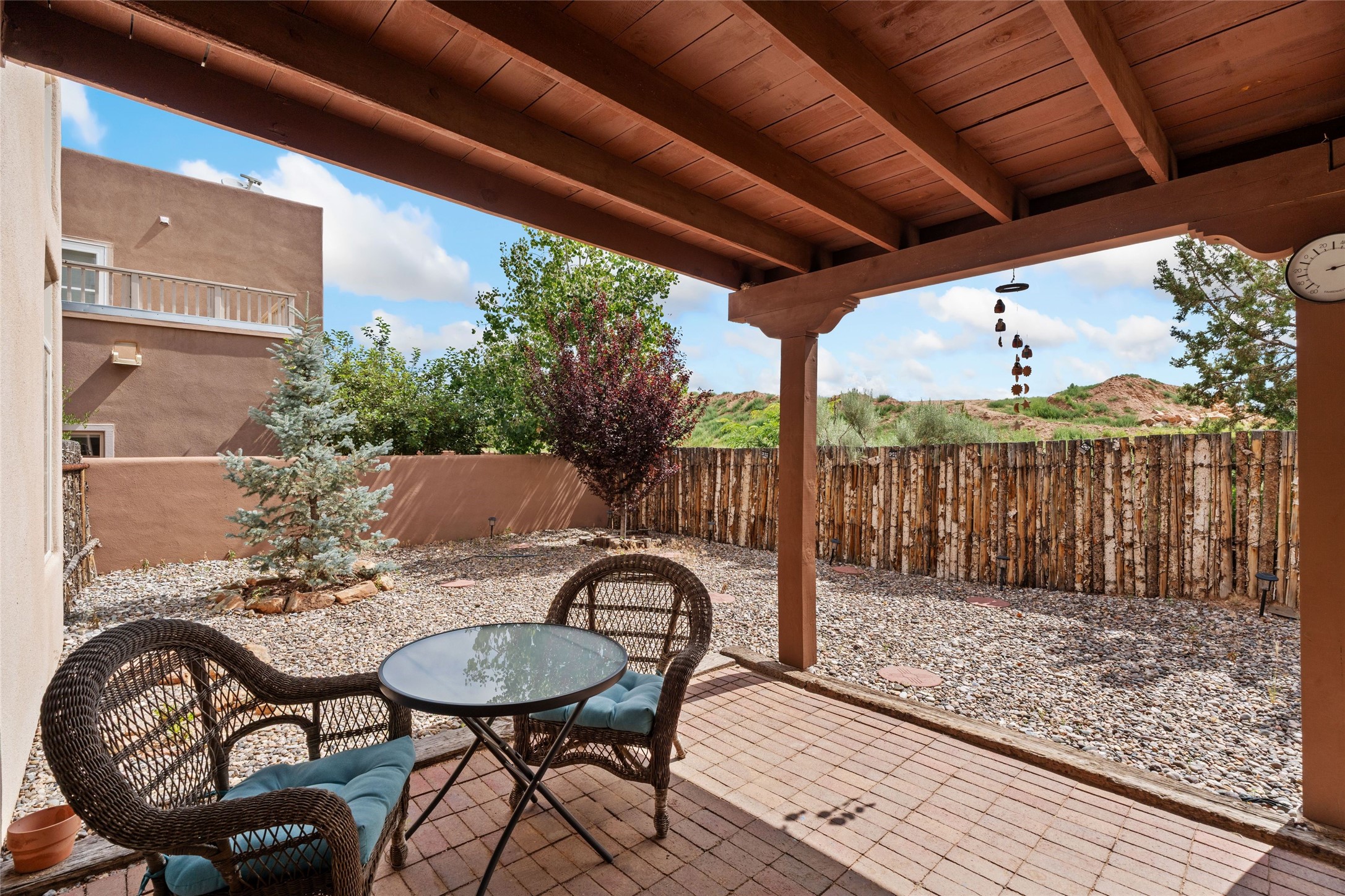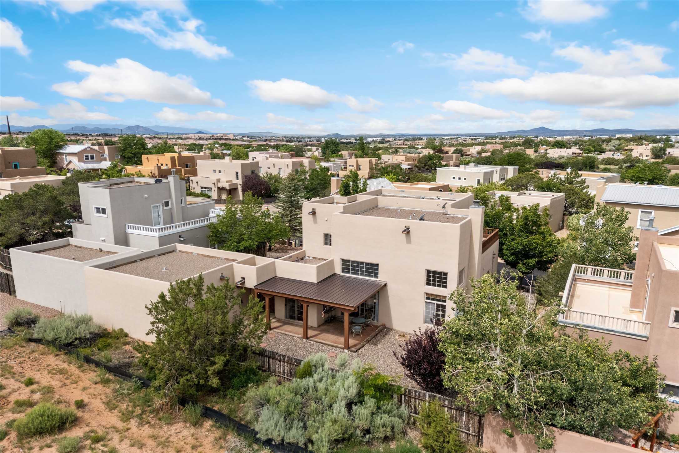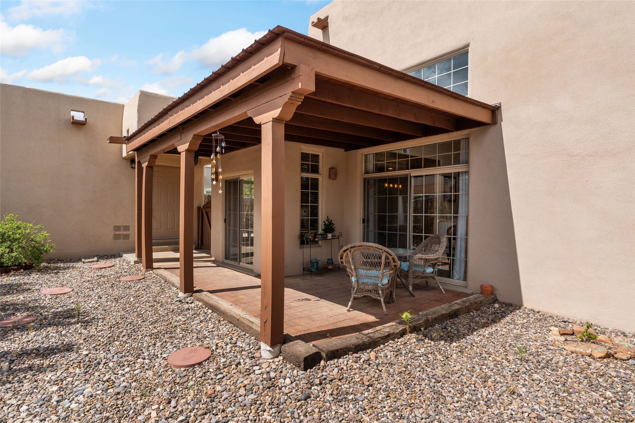 Attractive 3-bedroom, 2-bath residence in the desirable planned community of Nava Ade. Step inside to be greeted by soaring high ceilings and natural light streaming in through large windows. Elegant, stacked stone fireplace adds style to the living room. The kitchen is appointed with a spacious island, stainless steel appliances, and granite countertops. Retreat to the upstairs primary suite, offering a generous walk-in closet, two private balconies and a bathroom with a walk-in shower and a soaking tub. Guest rooms offer flex space as office, studio or exercise room. Detached 2-car garage with garage access from backyard. Enjoy the community's extensive walking trails and open spaces, along with amenities including a swimming pool, rejuvenating hot tub, a steam room, and a workout facility. Conveniently located near Santa Fe Community College and the Genoveva Chavez Community Center.