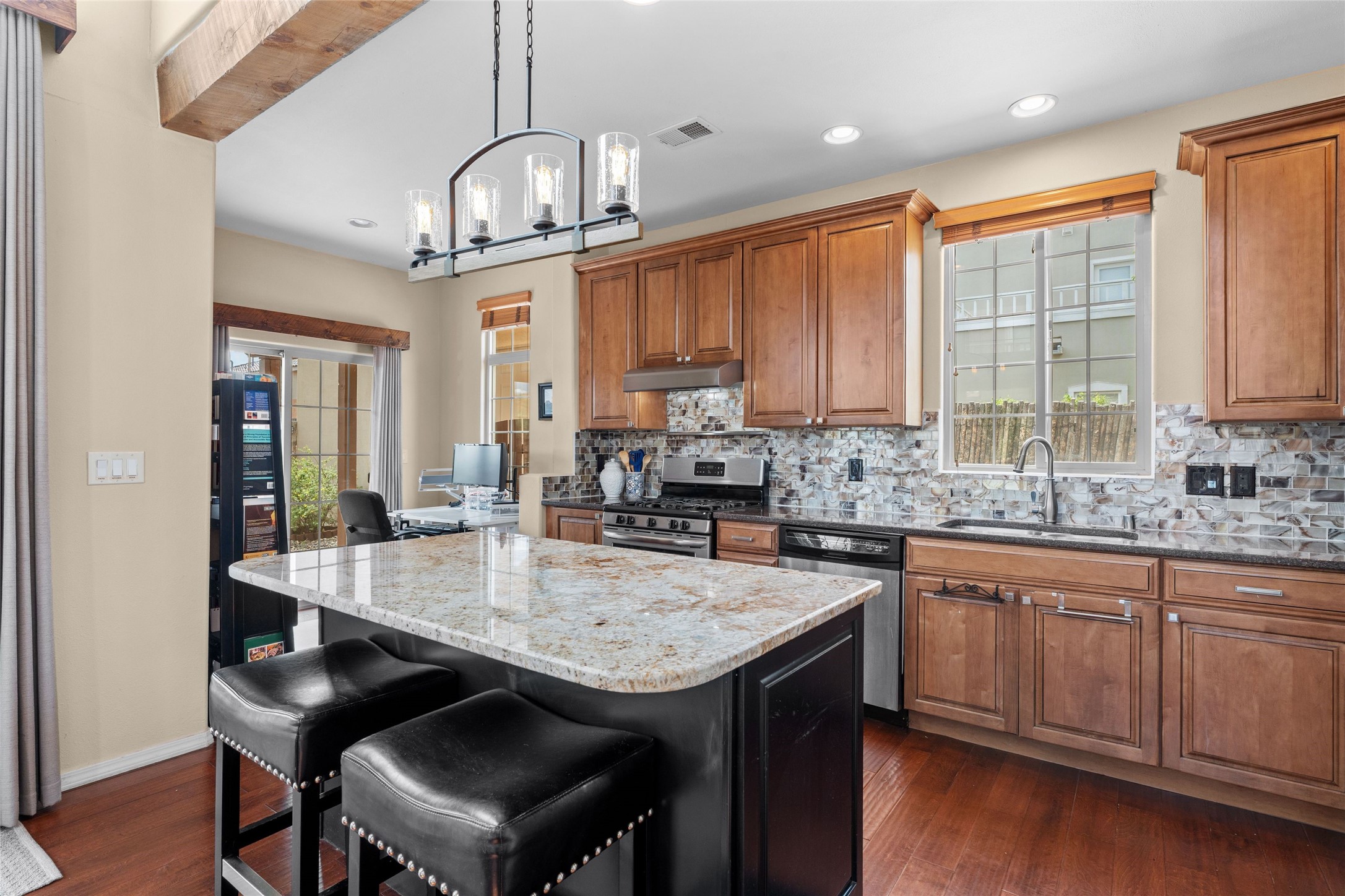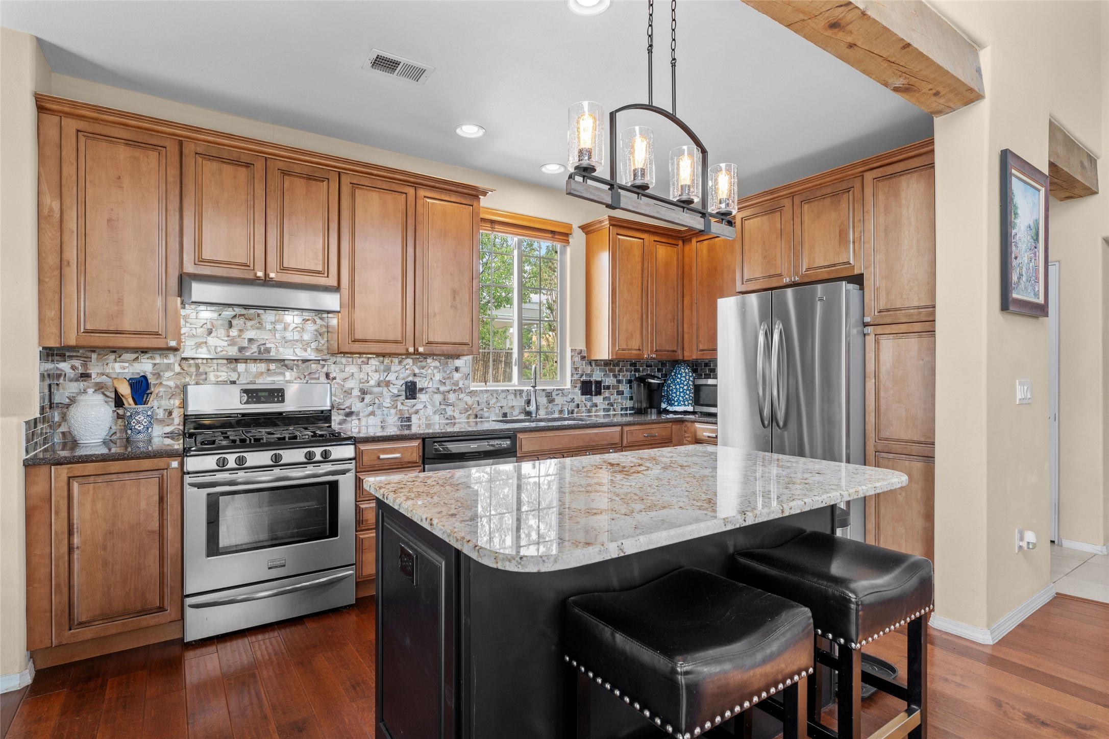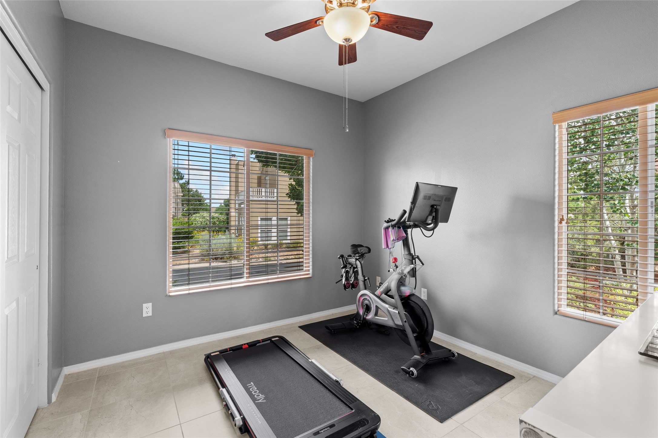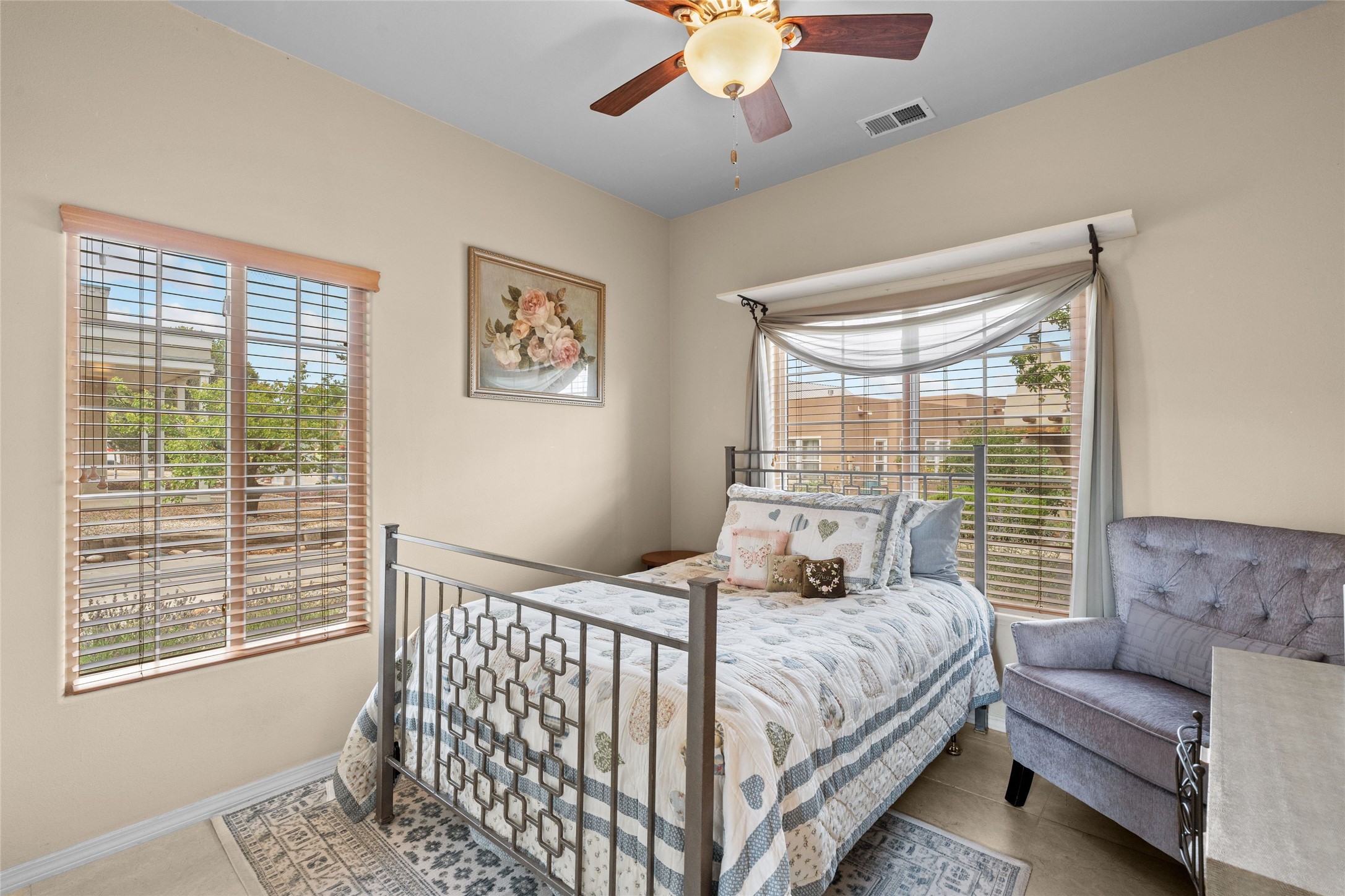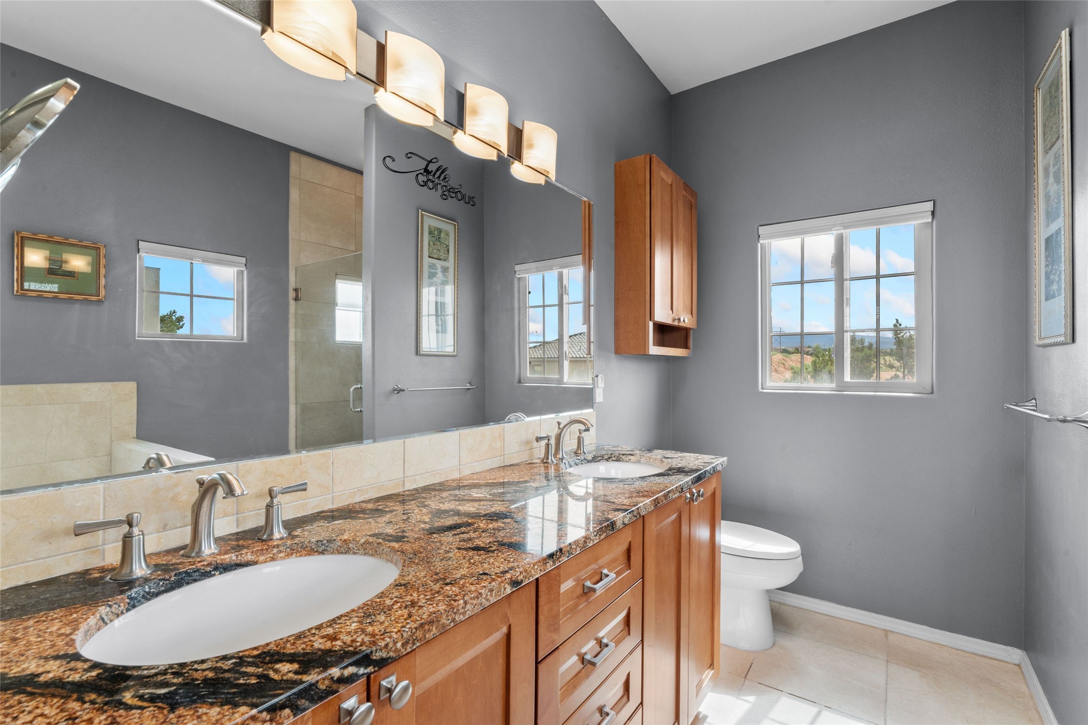 Attractive 3-bedroom, 2-bath residence in the desirable planned community of Nava Ade. Step inside to be greeted by soaring high ceilings and natural light streaming in through large windows. Elegant, stacked stone fireplace adds style to the living room. The kitchen is appointed with a spacious island, stainless steel appliances, and granite countertops. Retreat to the upstairs primary suite, offering a generous walk-in closet, two private balconies and a bathroom with a walk-in shower and a soaking tub. Guest rooms offer flex space as office, studio or exercise room. Detached 2-car garage with garage access from backyard. Enjoy the community's extensive walking trails and open spaces, along with amenities including a swimming pool, rejuvenating hot tub, a steam room, and a workout facility. Conveniently located near Santa Fe Community College and the Genoveva Chavez Community Center.