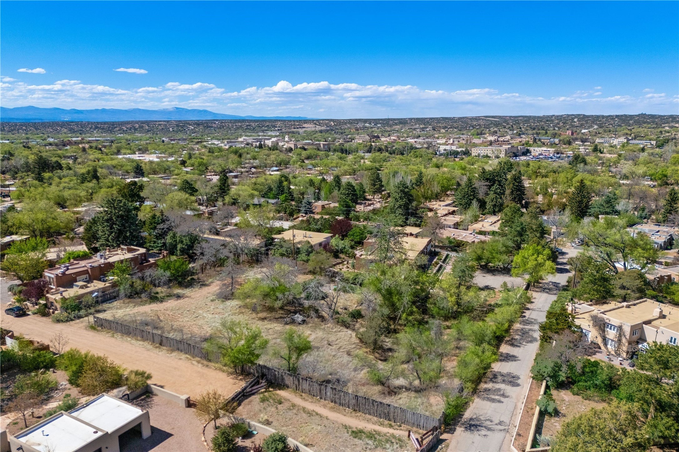 Prime Historic Eastside nearly 3/4-acre residential lot with R-3 zoning located in the heart of the prime Acequia Madre neighborhood. This area is renowned for its unique charm, featuring gracefully curved walls, aged Mexican doors, and lush cascades of wisteria and willows. The Acequia Madre neighborhood represents the essence of Eastside Santa Fe--romantic, time-honored, and rich in history. Here, you will enjoy breathtaking views of the surrounding mountain ranges and the brilliant blue skies that New Mexico is famous for, providing a stunning backdrop for your future home. Lot includes architectural drawings by renowned architect Lorn Tryk for a territorial style 5 bedroom, 5.5 bath home (including casita), surrounded by an abundance of outdoor living spaces, portals and pool. or the home and casita have already been approved by the City of Santa Fe. Award-inning builder Scott Wong of Solterra Design Build is ready to turn these plans into a reality. Convenience is at your fingertips with Downtown Subscription, a popular local coffee shop and gathering spot, just a short distance away. Additionally, Kaune's Neighborhood Market is nearby. The vibrant art scene of Canyon Road and the cultural heart of the Santa Fe Plaza are also within easy reach, allowing for endless exploration and enjoyment. This lot presents a unique chance to create a residence in an iconic neighborhood, where every corner reflects the rich heritage and artistic spirit of of Santa Fe.