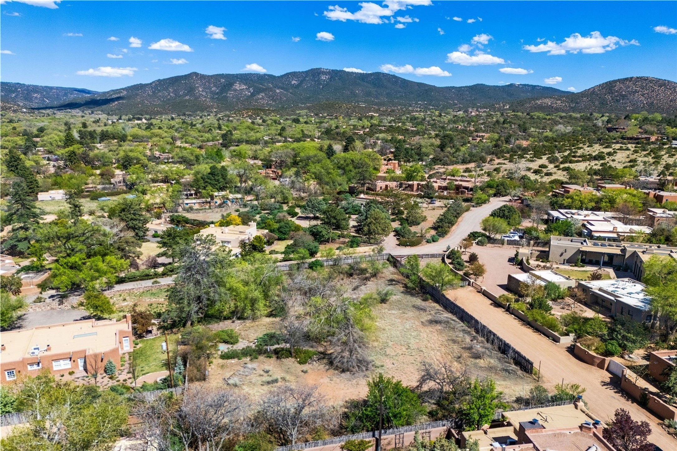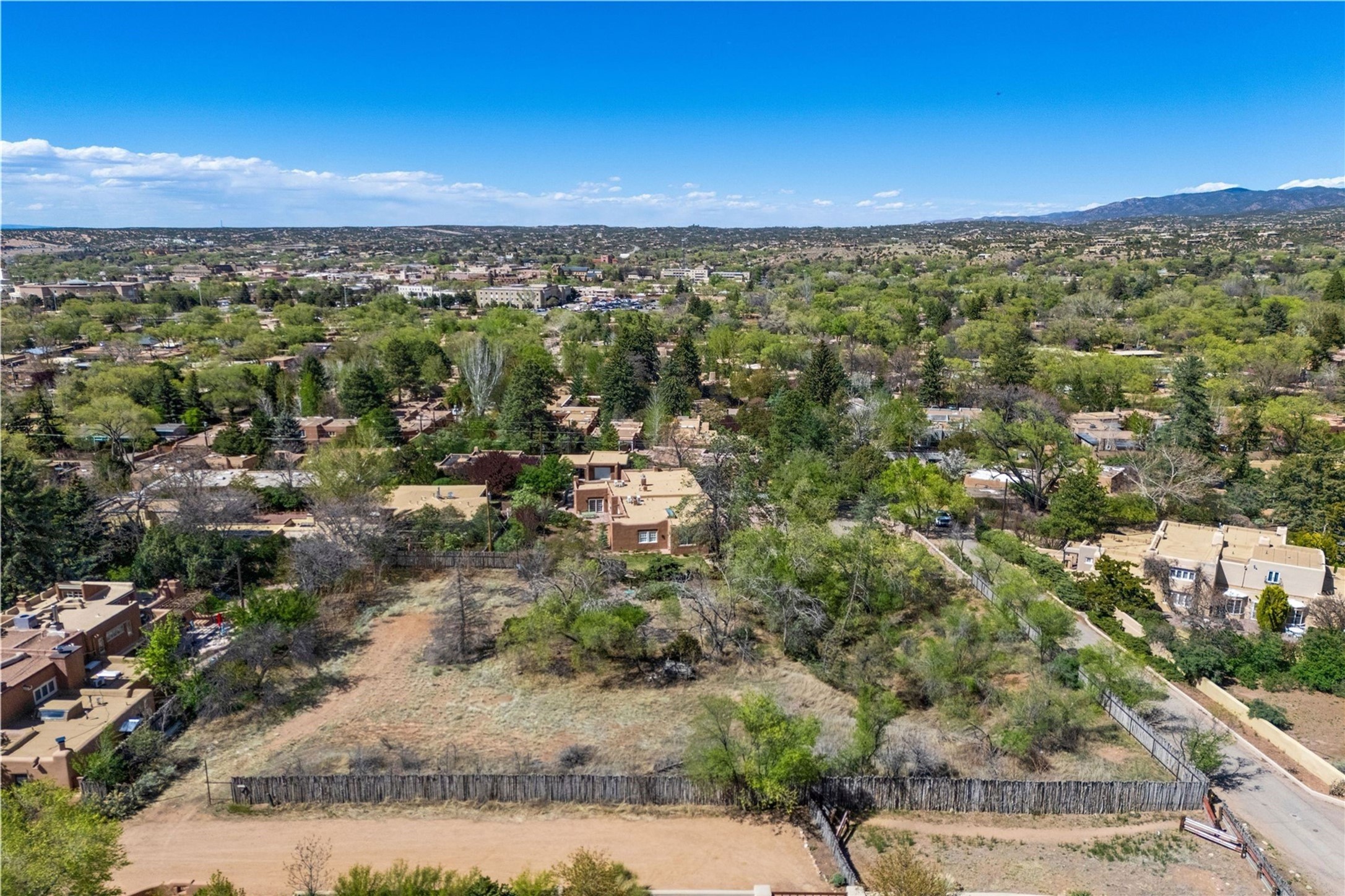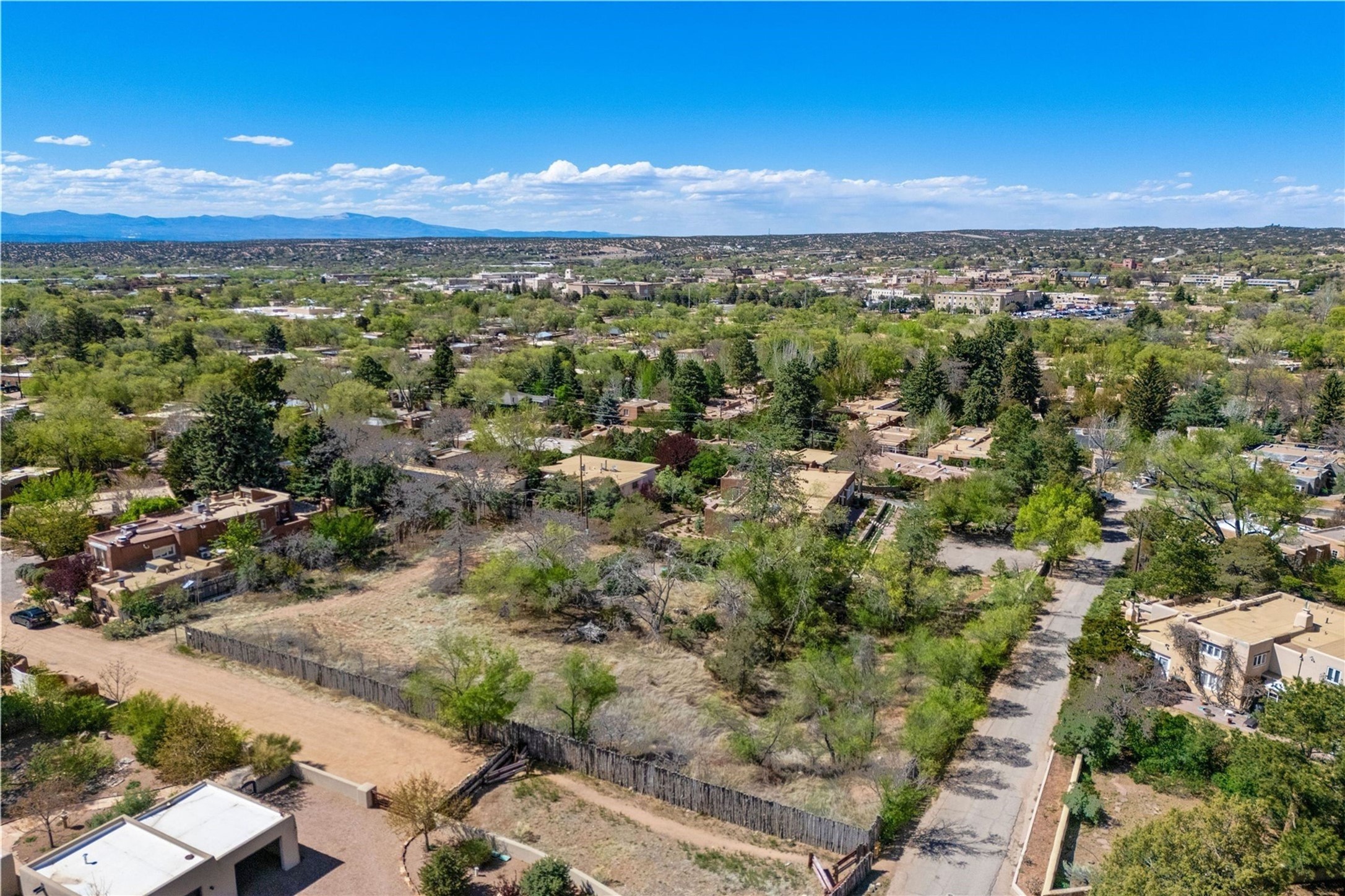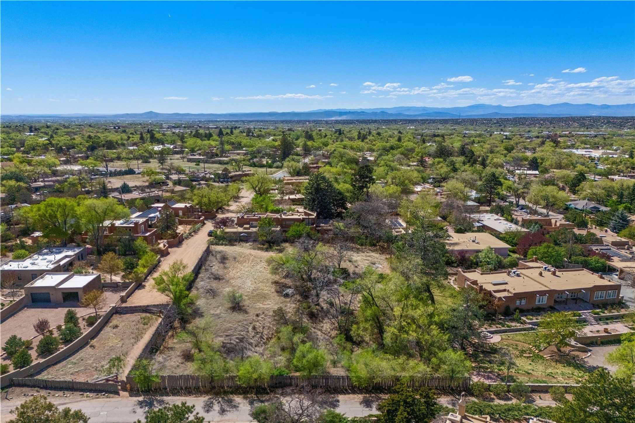 Prime Historic Eastside nearly 3/4-acre residential lot with R-3 zoning located in the heart of the prime Acequia Madre neighborhood. This area is renowned for its unique charm, featuring gracefully curved walls, aged Mexican doors, and lush cascades of wisteria and willows. The Acequia Madre neighborhood represents the essence of Eastside Santa Fe--romantic, time-honored, and rich in history. Here, you will enjoy breathtaking views of the surrounding mountain ranges and the brilliant blue skies that New Mexico is famous for, providing a stunning backdrop for your future home. Lot includes architectural drawings by renowned architect Lorn Tryk for a territorial style 5 bedroom, 5.5 bath home (including casita), surrounded by an abundance of outdoor living spaces, portals and pool. or the home and casita have already been approved by the City of Santa Fe. Award-inning builder Scott Wong of Solterra Design Build is ready to turn these plans into a reality. Convenience is at your fingertips with Downtown Subscription, a popular local coffee shop and gathering spot, just a short distance away. Additionally, Kaune's Neighborhood Market is nearby. The vibrant art scene of Canyon Road and the cultural heart of the Santa Fe Plaza are also within easy reach, allowing for endless exploration and enjoyment. This lot presents a unique chance to create a residence in an iconic neighborhood, where every corner reflects the rich heritage and artistic spirit of of Santa Fe.