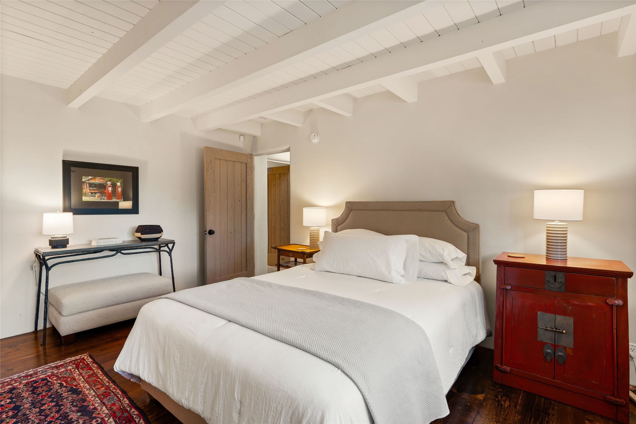 Legacy of Art and Architecture on Camino Del Monte Sol - Gracefully unfolding along iconic Camino Del Monte Sol - just moments from the legendary galleries and cafes of Canyon Road - this extraordinary Historic Eastside compound is a rare fusion of heritage, artistry, and architectural distinction. Once home to the Wheelwrights and graced by Georgia O'Keeffe, who lived in the guesthouse during her early years in Santa Fe, the property is steeped in cultural legacy. The Pueblo Revival 3BR/3BA main house (apx 2,822 sqft), begun in 1920, and the 2BR/2BA guesthouse (apx 1,577 sqft), added in 1925 on .34 acre(s), have been thoughtfully enhanced over time while preserving their timeless character. Signature elements, thick adobe walls, hand-carved vigas, coved plaster ceilings, antique doors, fine finishes and fixtures, and a blend of pine plank and flagstone floors imbue the home with warmth and soul. Eight (8) fireplaces provide lyrical rhythm, while a wisteria-draped abundant garden offers architectural charm and seclusion.