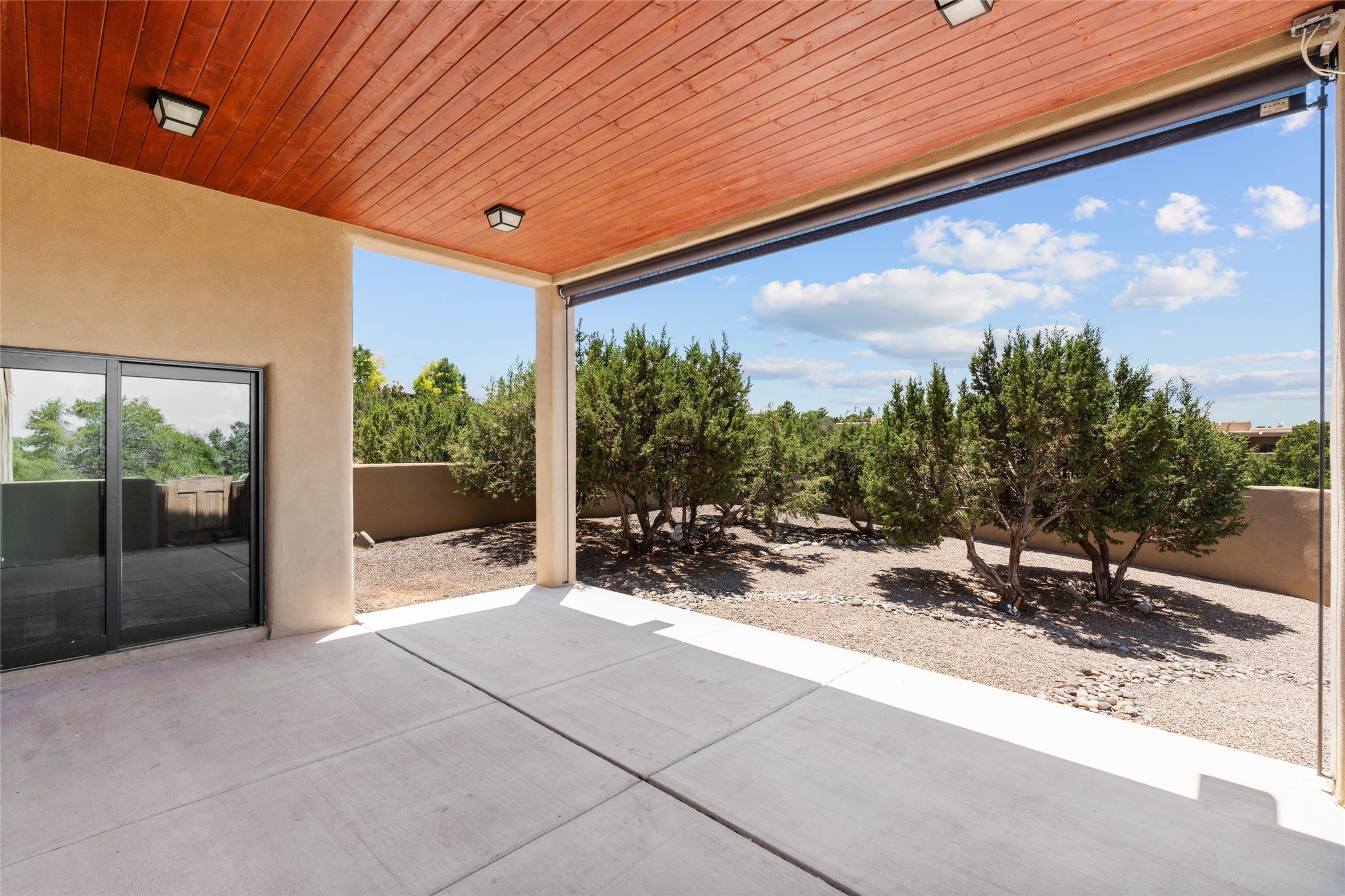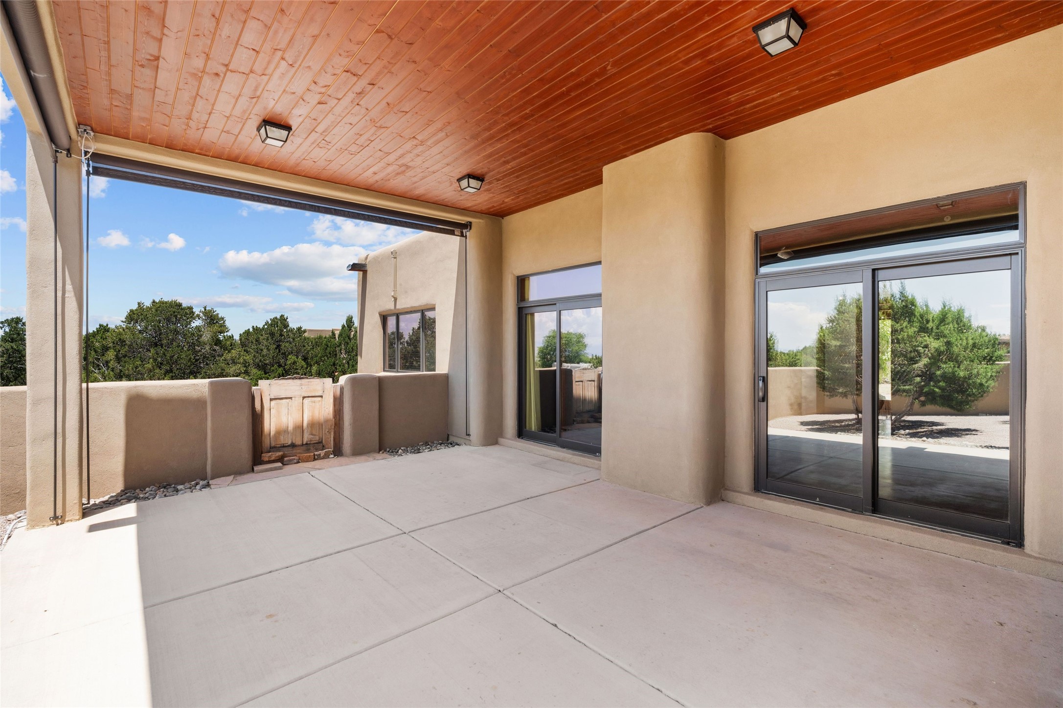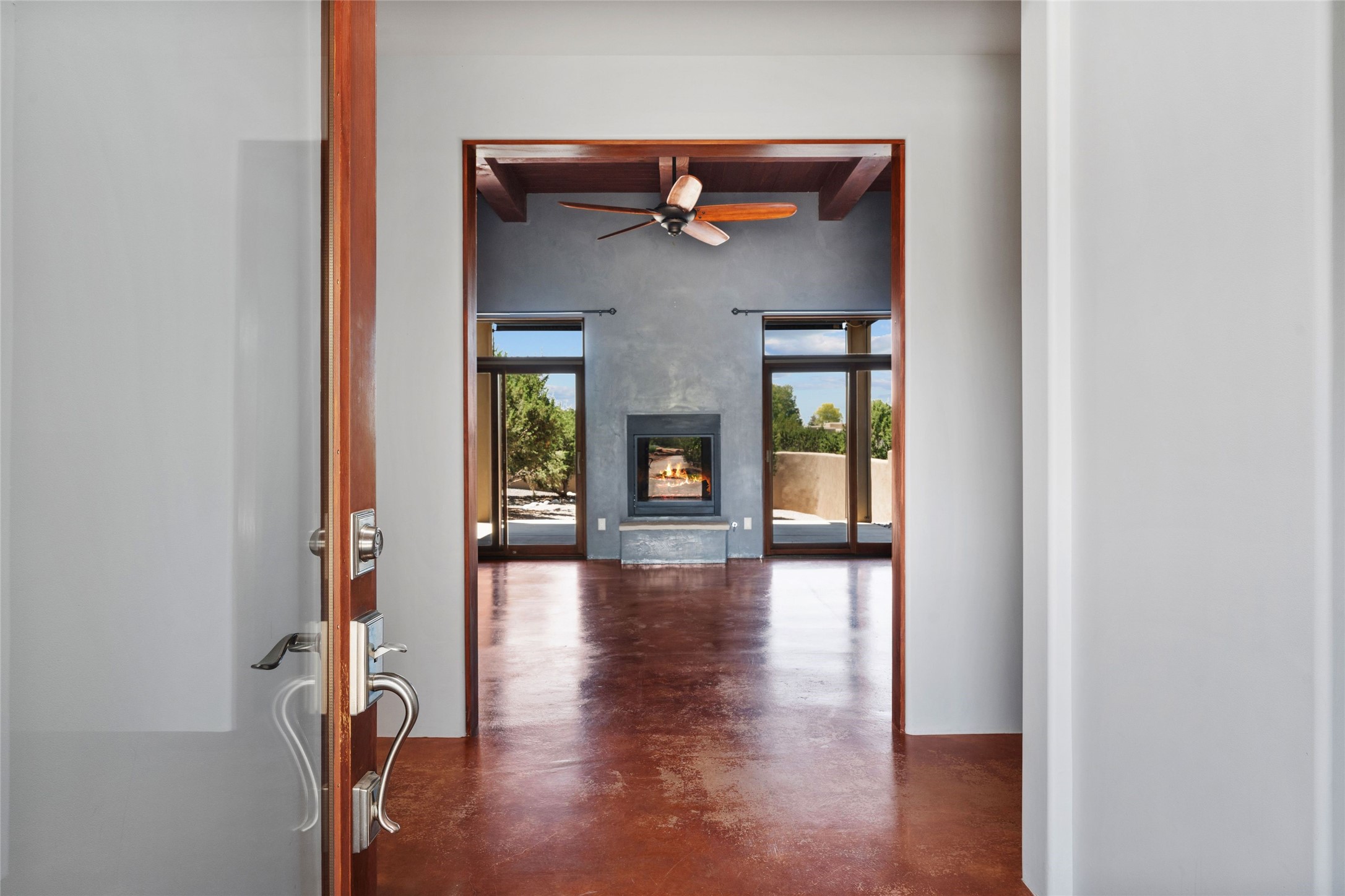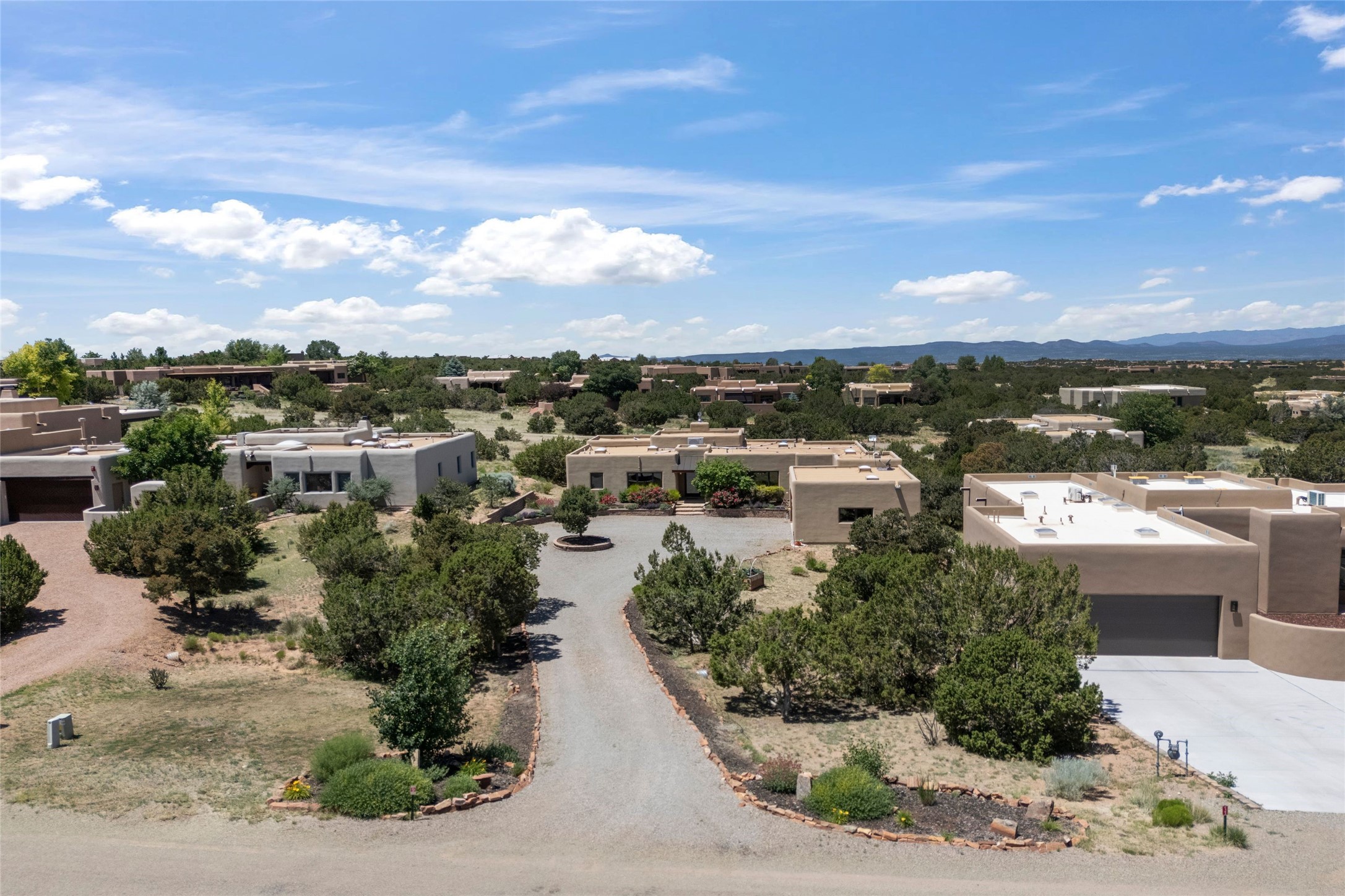 Heartstone community 3-bedroom, 3.5-bath soft contemporary home featuring sleek concrete floors, harmoniously paired with traditional Santa Fe elements, including iconic vigas and beams. Designed for convenience, this single-level property offers a spacious layout with no interior steps, making it accessible and easy to navigate. Enjoy the luxury of two living areas, ideal for relaxation and entertaining friends and family. The large kitchen and dining area provide the perfect backdrop for memorable gatherings. Step outside to the back portal, where a generous backyard awaits, offering sweeping views of the Jemez mountains that elevate outdoor living. In addition, enjoy Sangre de Cristo views from the front. Heartstone is characterized by half-acre lots, thoughtfully arranged around a shared meadow and many acres of permanently dedicated open space, fostering a connection to nature and tranquility. For those who enjoy an active lifestyle, the community is surrounded by a network of trails, granting access to the La Tierra Trails--a multi-use system featuring 25 miles of paths designed for hikers, cyclists, and equestrians alike. The community house serves as a venue for social gatherings and activities, complemented by exercise areas and a media room. Located in the desirable Tano Road area, this residence provides easy access to the vibrant Santa Fe Plaza, the artistic charm of Canyon Road, the Santa Fe's Farmer's Market, and the renowned Santa Fe Opera.