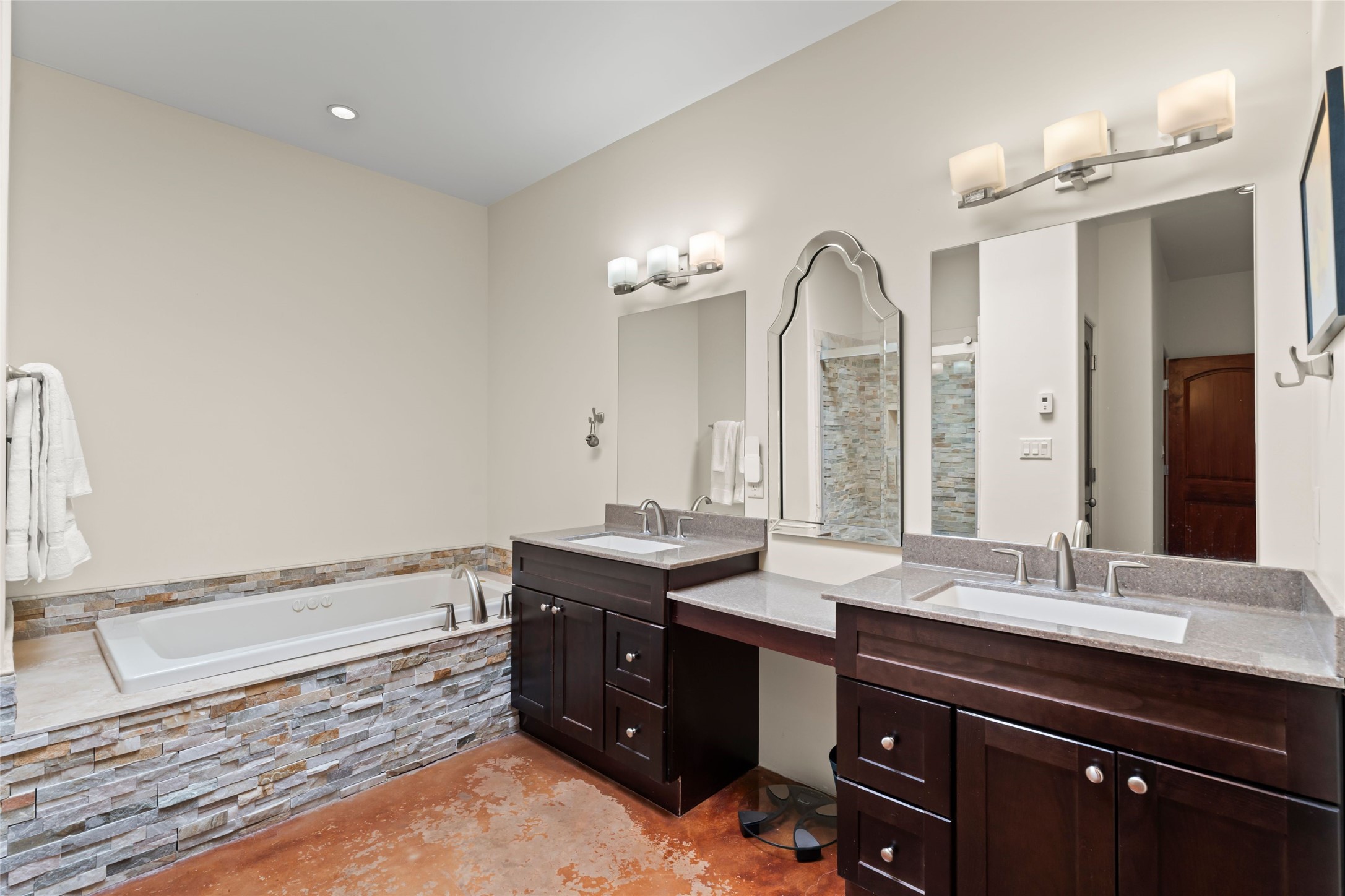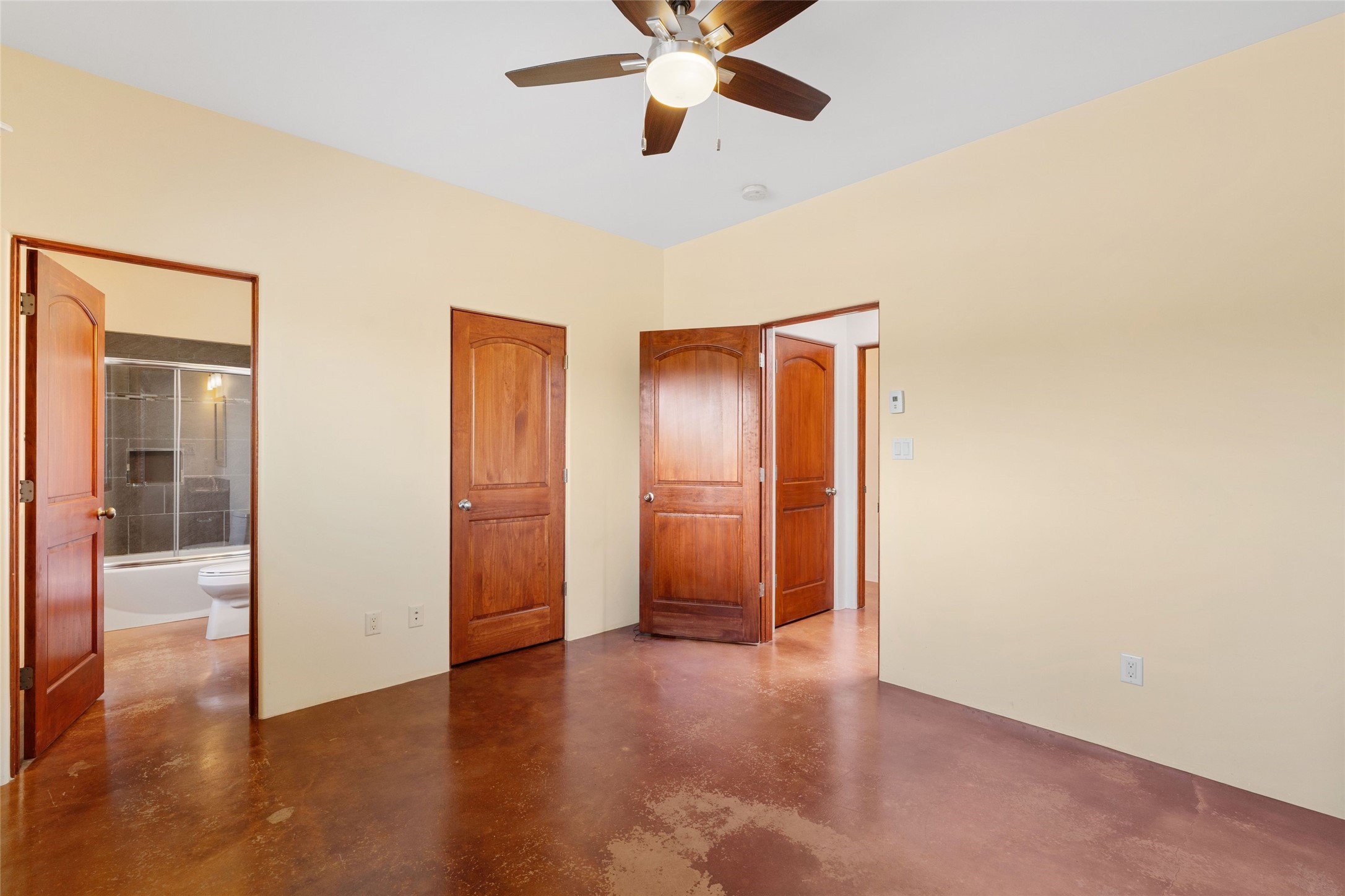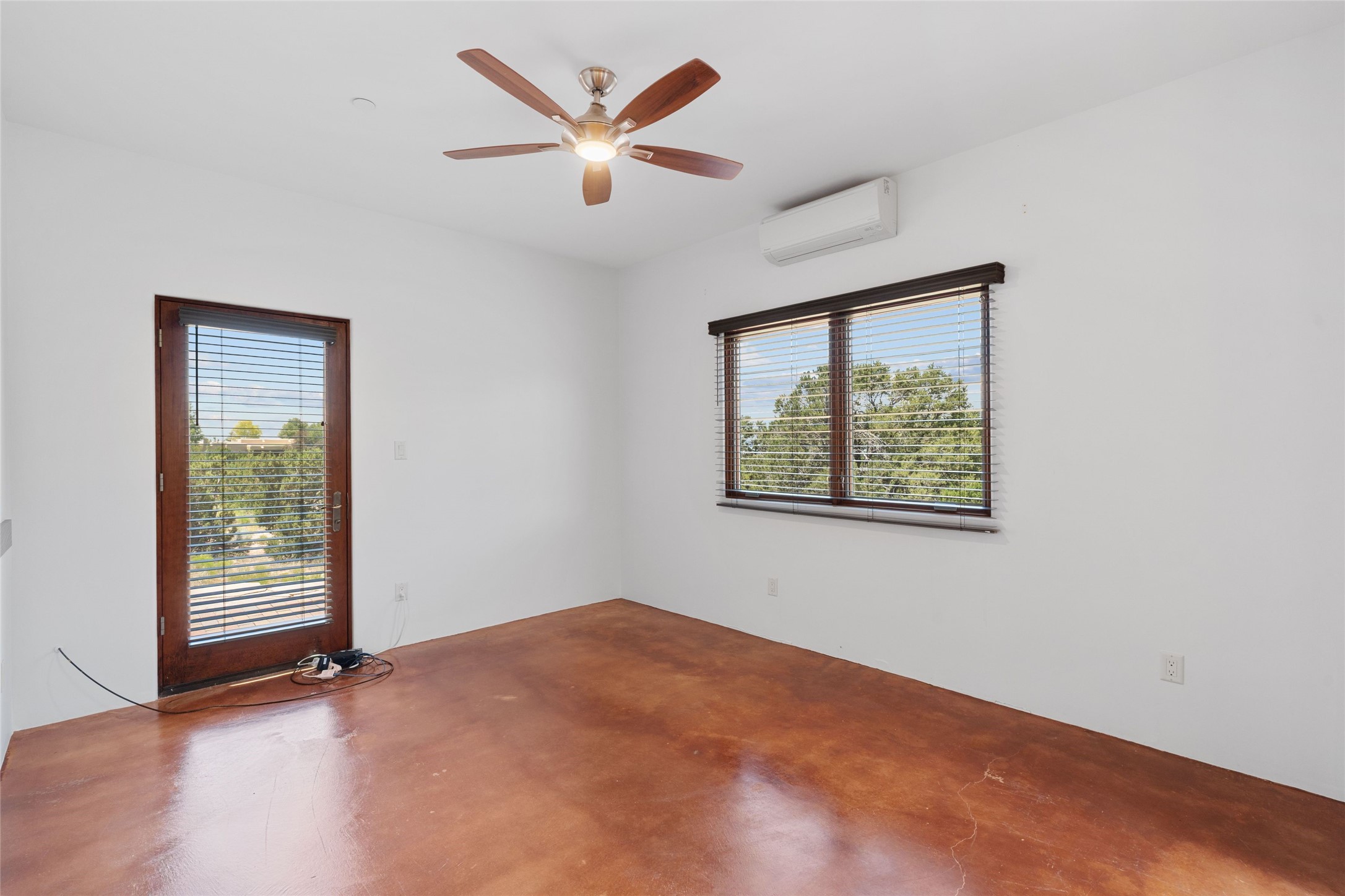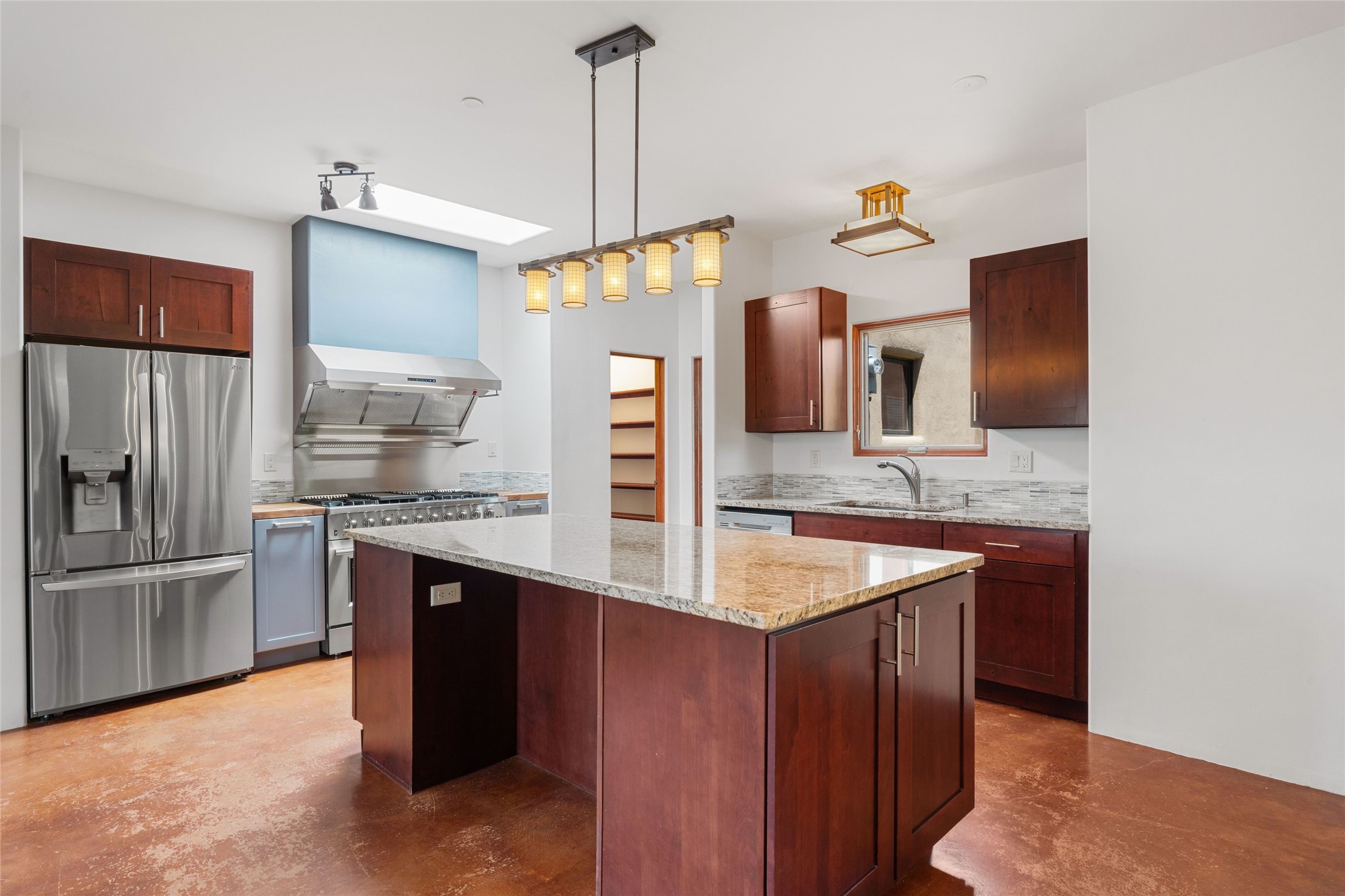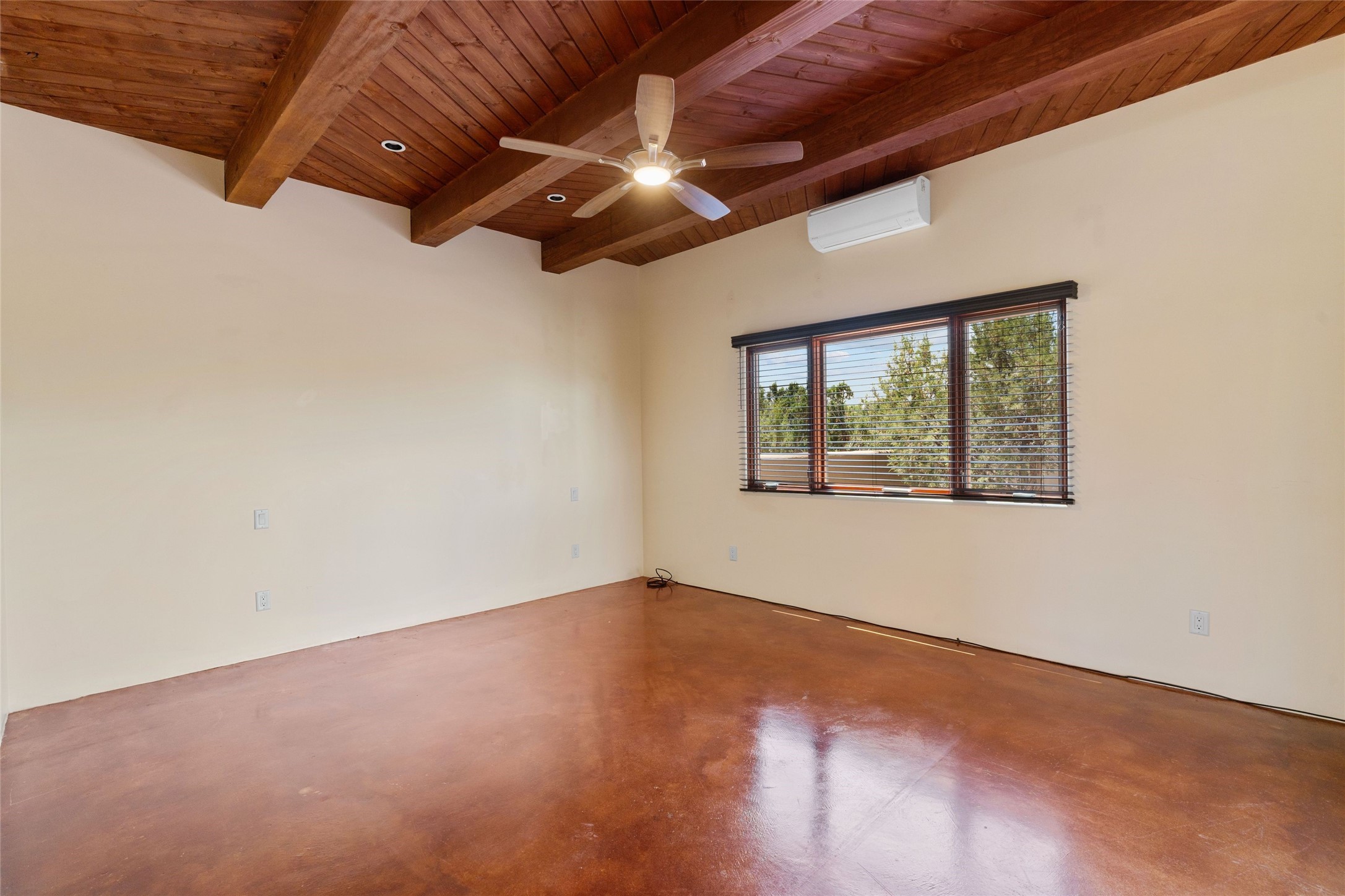 Heartstone community 3-bedroom, 3.5-bath soft contemporary home featuring sleek concrete floors, harmoniously paired with traditional Santa Fe elements, including iconic vigas and beams. Designed for convenience, this single-level property offers a spacious layout with no interior steps, making it accessible and easy to navigate. Enjoy the luxury of two living areas, ideal for relaxation and entertaining friends and family. The large kitchen and dining area provide the perfect backdrop for memorable gatherings. Step outside to the back portal, where a generous backyard awaits, offering sweeping views of the Jemez mountains that elevate outdoor living. In addition, enjoy Sangre de Cristo views from the front. Heartstone is characterized by half-acre lots, thoughtfully arranged around a shared meadow and many acres of permanently dedicated open space, fostering a connection to nature and tranquility. For those who enjoy an active lifestyle, the community is surrounded by a network of trails, granting access to the La Tierra Trails--a multi-use system featuring 25 miles of paths designed for hikers, cyclists, and equestrians alike. The community house serves as a venue for social gatherings and activities, complemented by exercise areas and a media room. Located in the desirable Tano Road area, this residence provides easy access to the vibrant Santa Fe Plaza, the artistic charm of Canyon Road, the Santa Fe's Farmer's Market, and the renowned Santa Fe Opera.