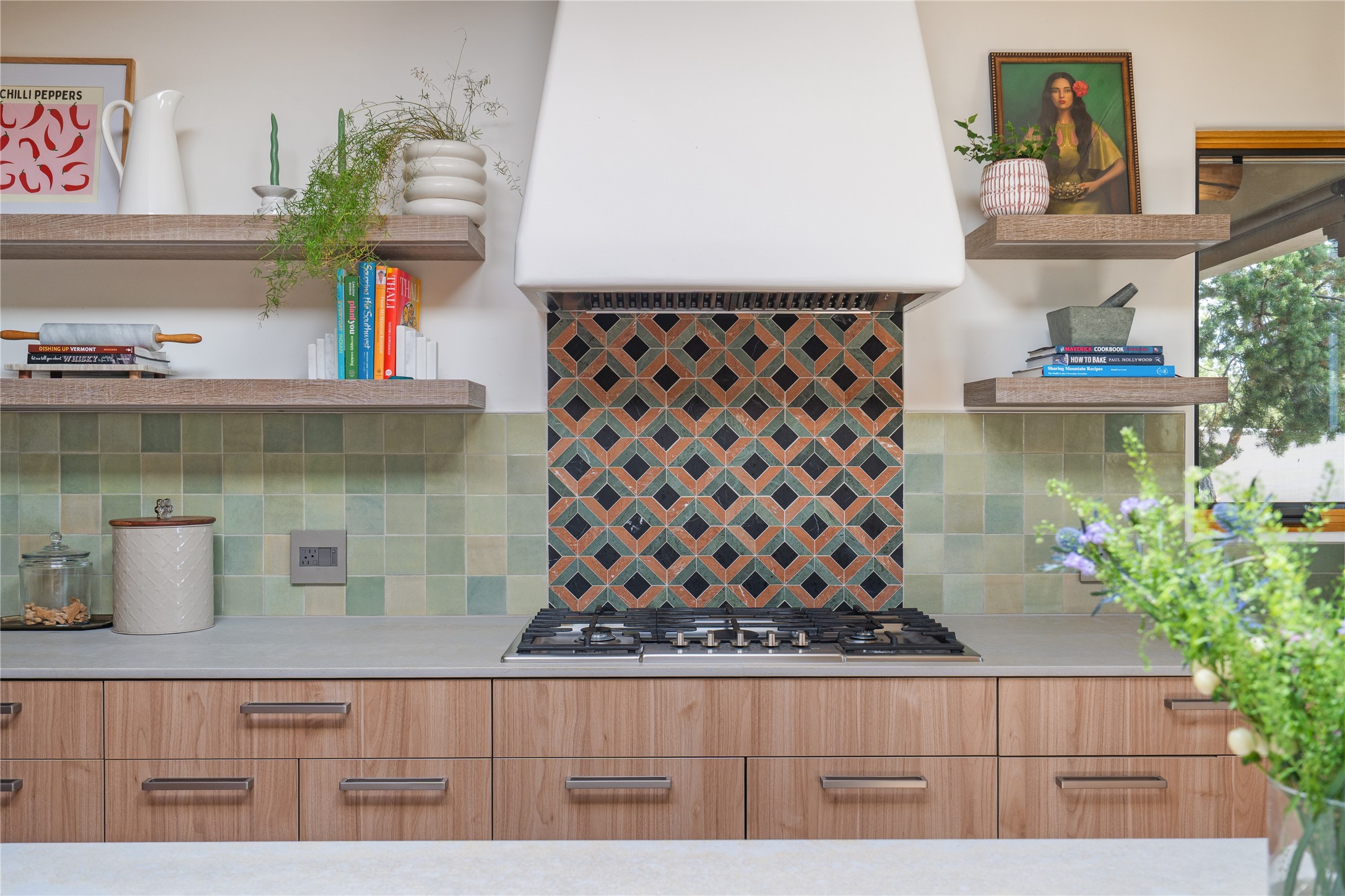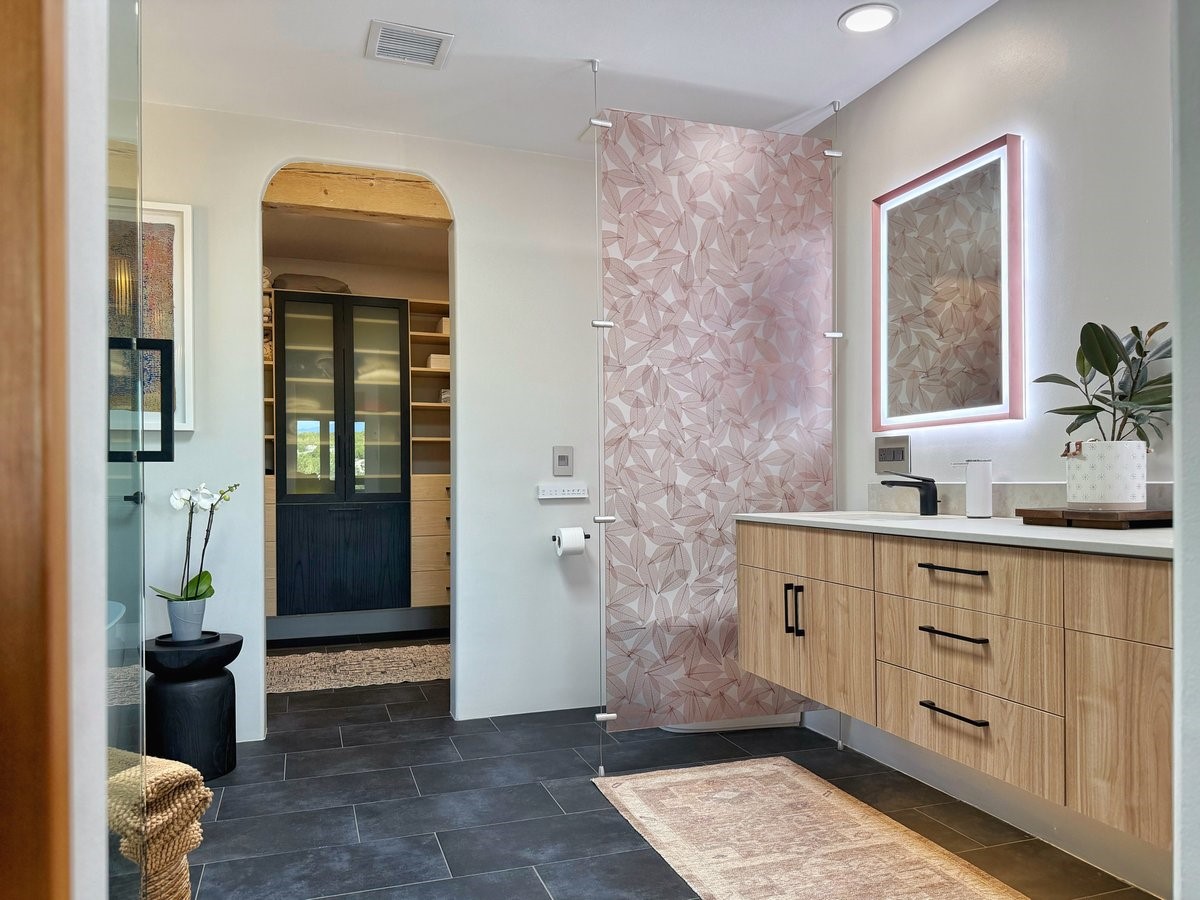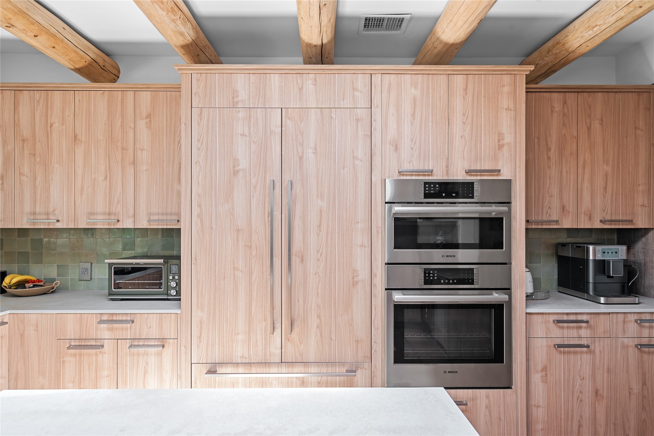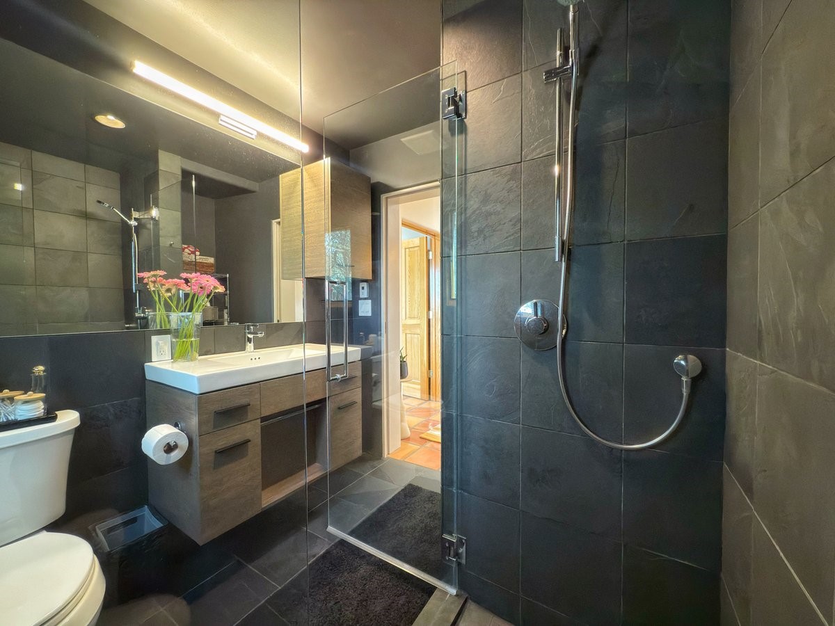 Inside, traditional elements like hand-adzed vigas, saltillo tile floors, and two cozy kiva fireplaces (one in the living room, one in the primary suite) provide that authentic Santa Fe warmth. But the heart of the home? It's the spectacular, magazine-featured kitchen. Thoughtfully remodeled by DMC Fine Cabinetry & Renovations and builder Eric Smith, this space has been showcased in Santa Fe Magazine, TREND, and more--and it shows. It's sleek, modern, and expertly designed for everyday ease and entertaining alike.