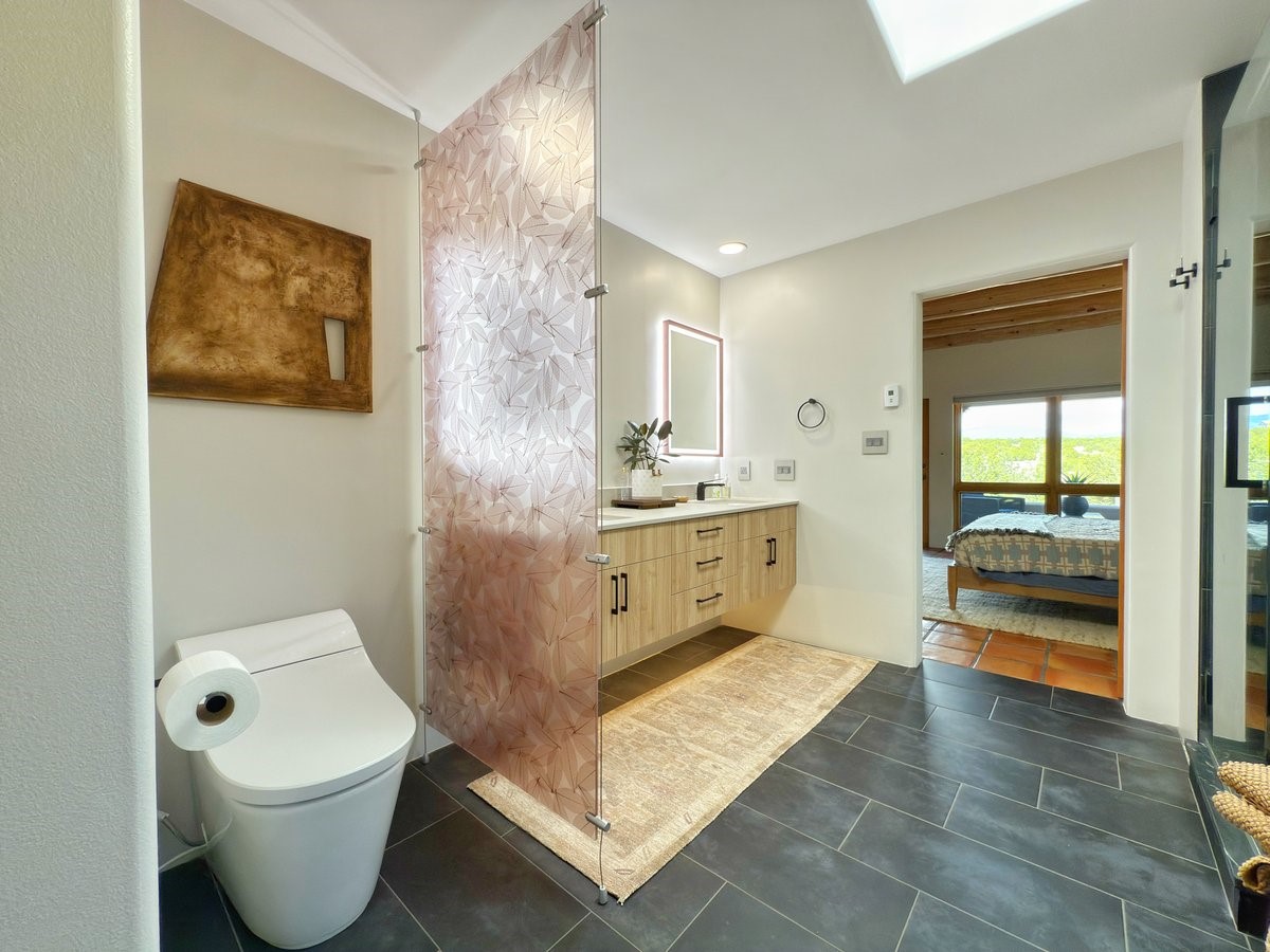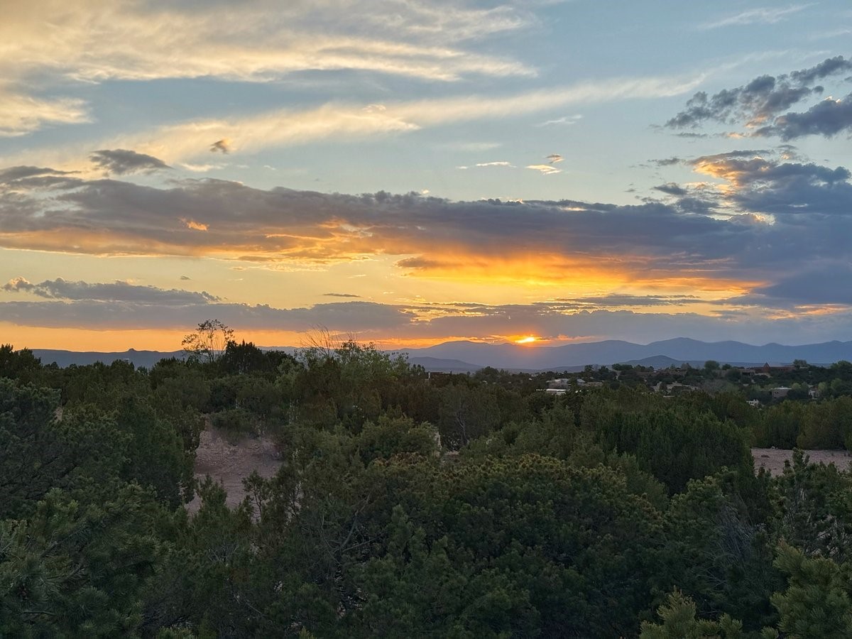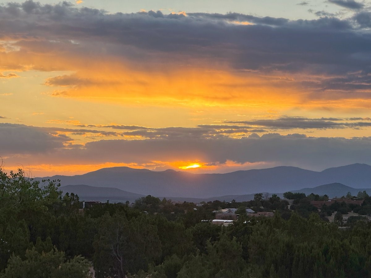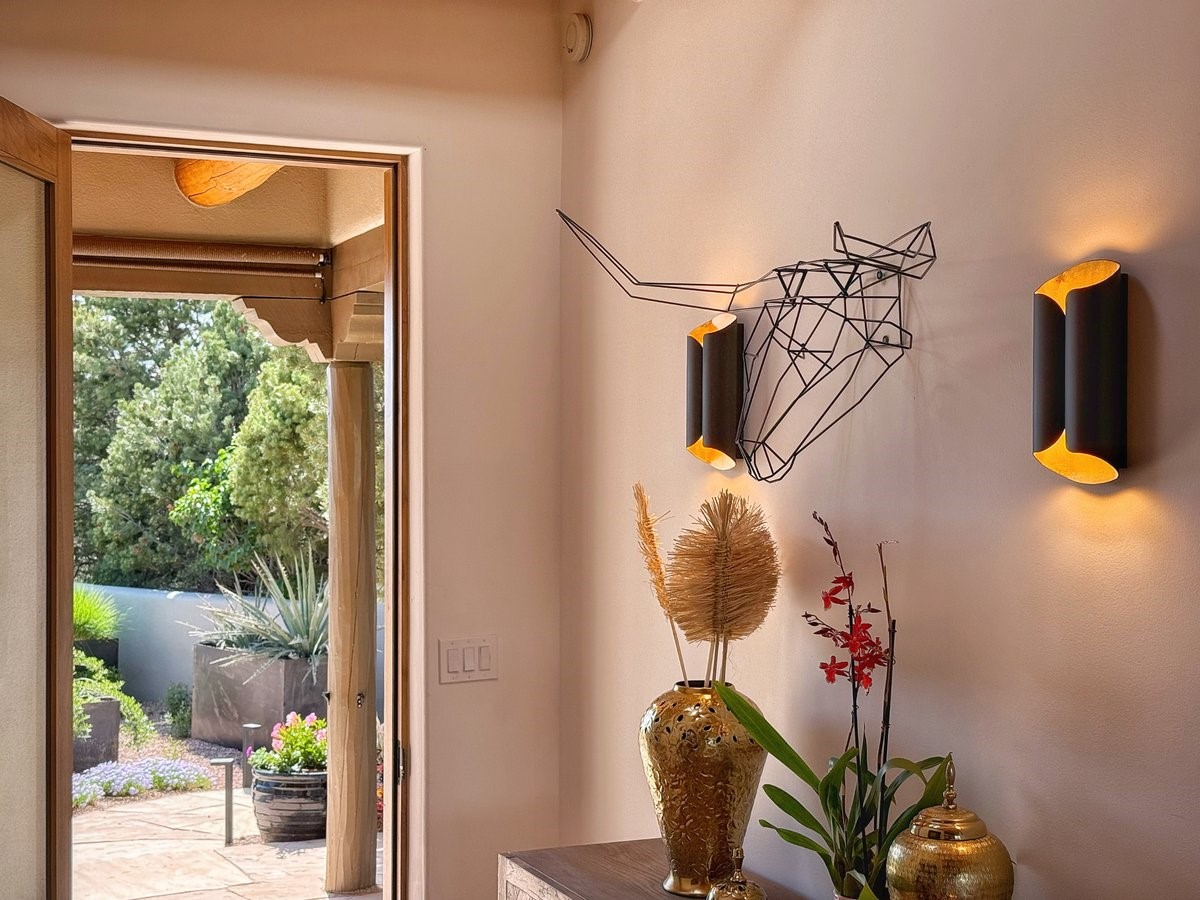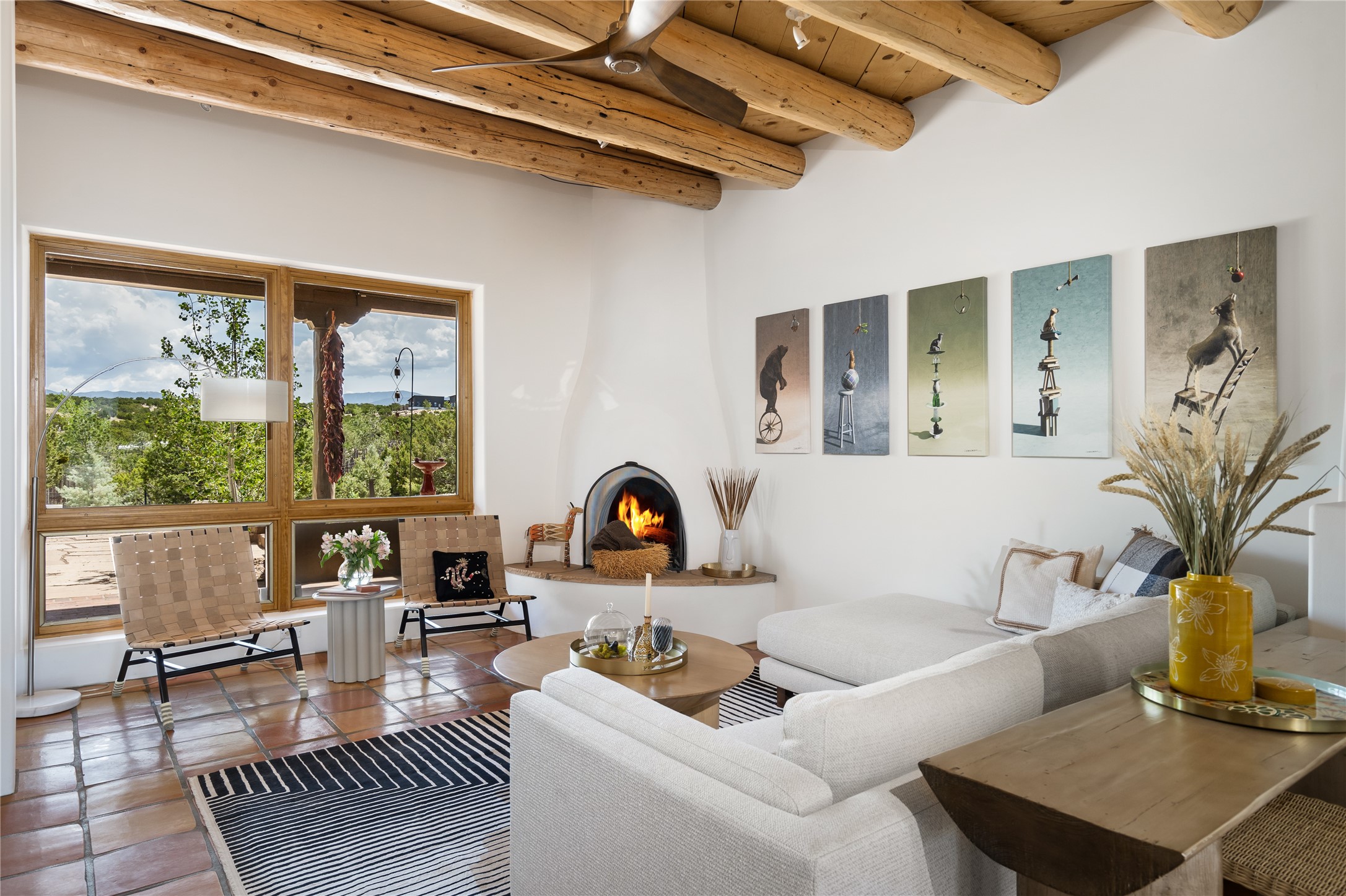 Perched on 2.5 serene acres with sweeping views of both the Jemez and Sangre de Cristo mountains, this 4-bedroom, 2-bath beauty brings together the best of Santa Fe style and mid-century design. From the moment you enter the front courtyard--complete with a kiva fireplace and peaceful water feature--you'll feel like you've stepped into your own private retreat where mid-century hip meets Santa Fe soul.
