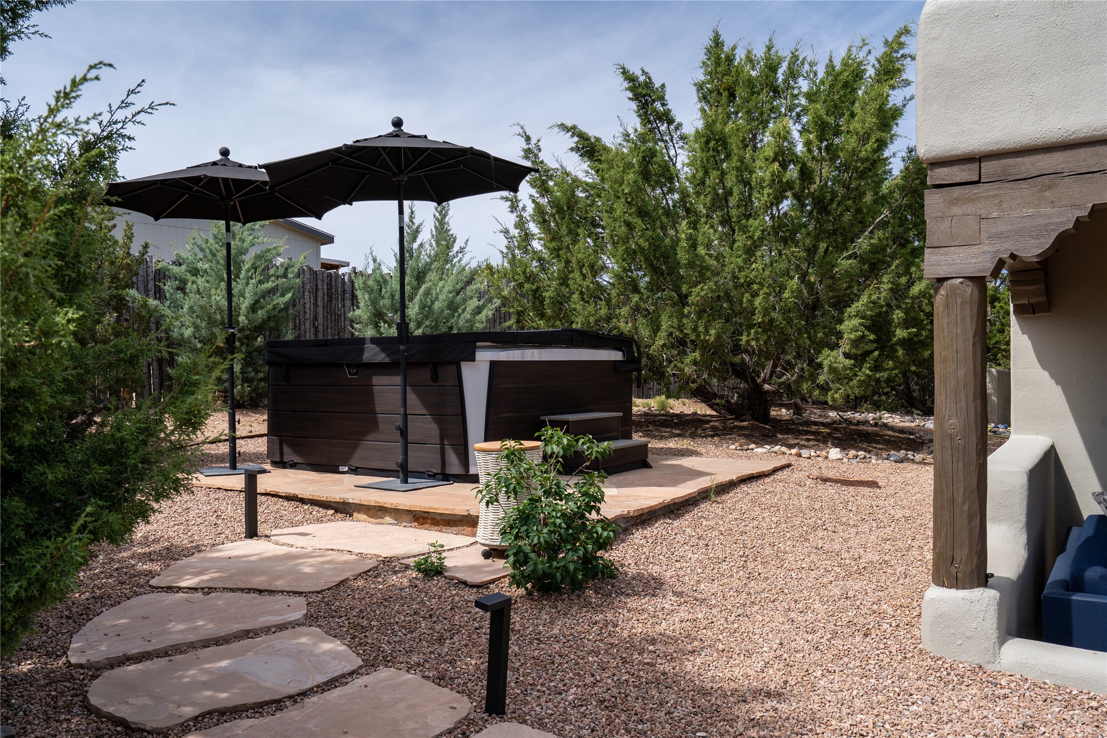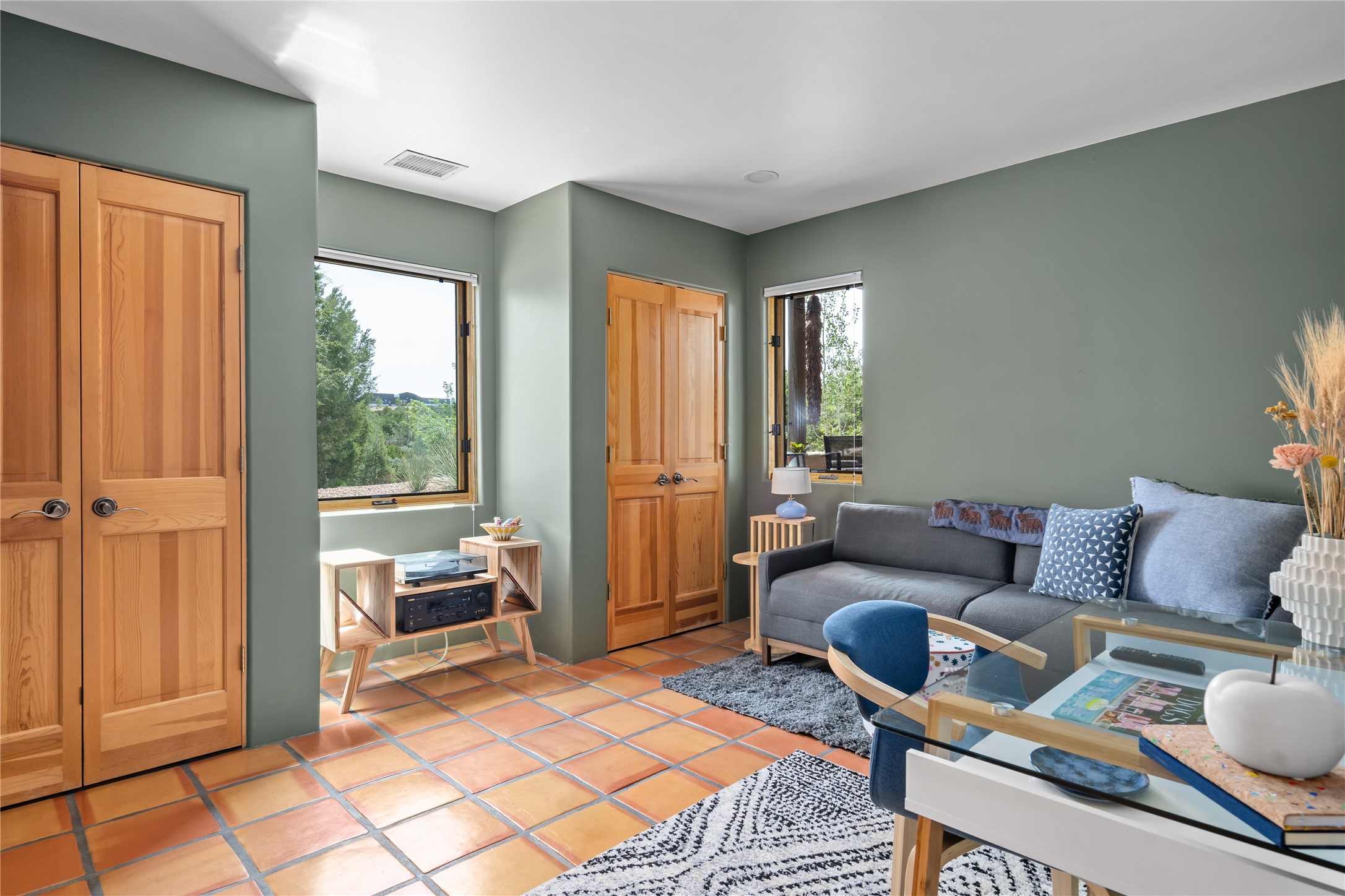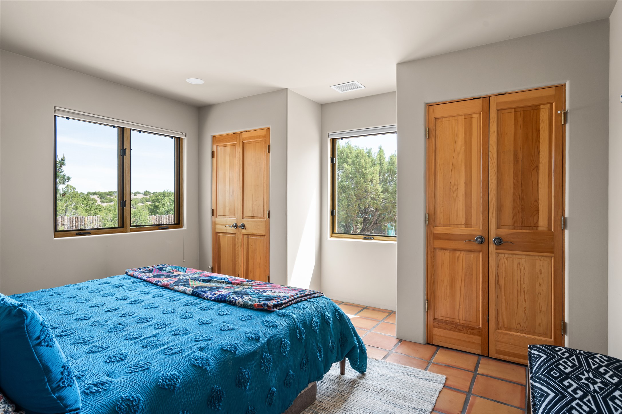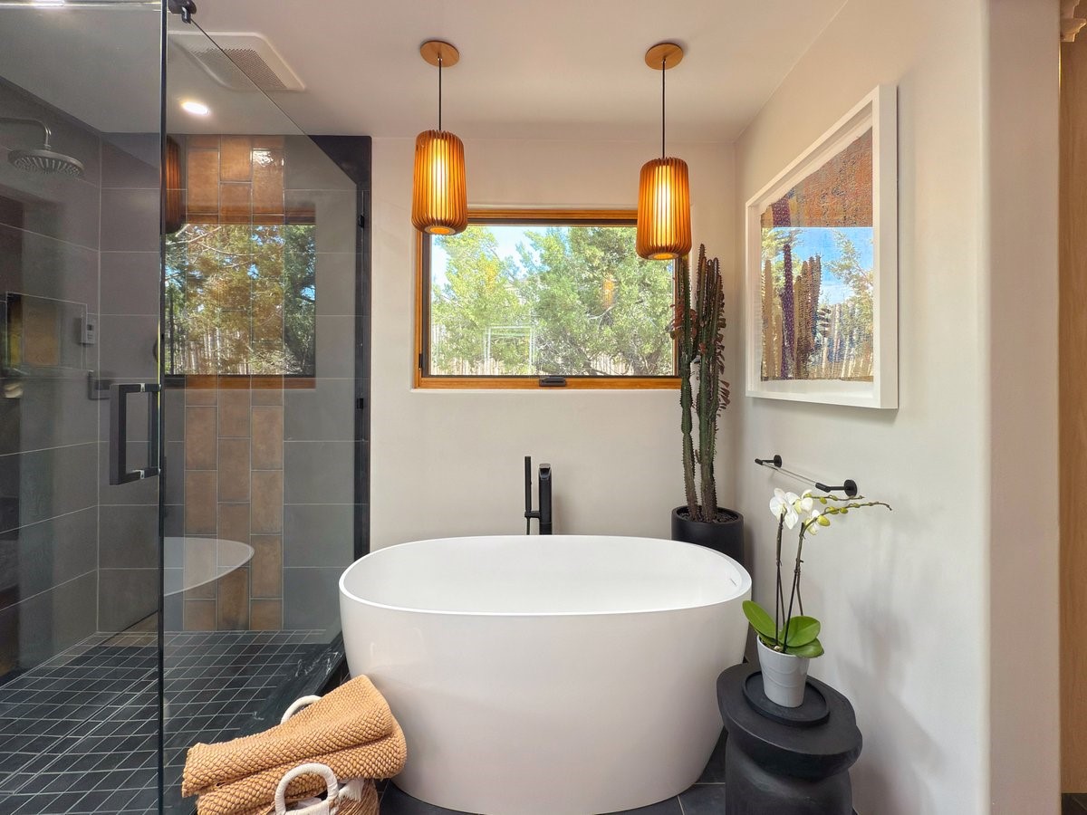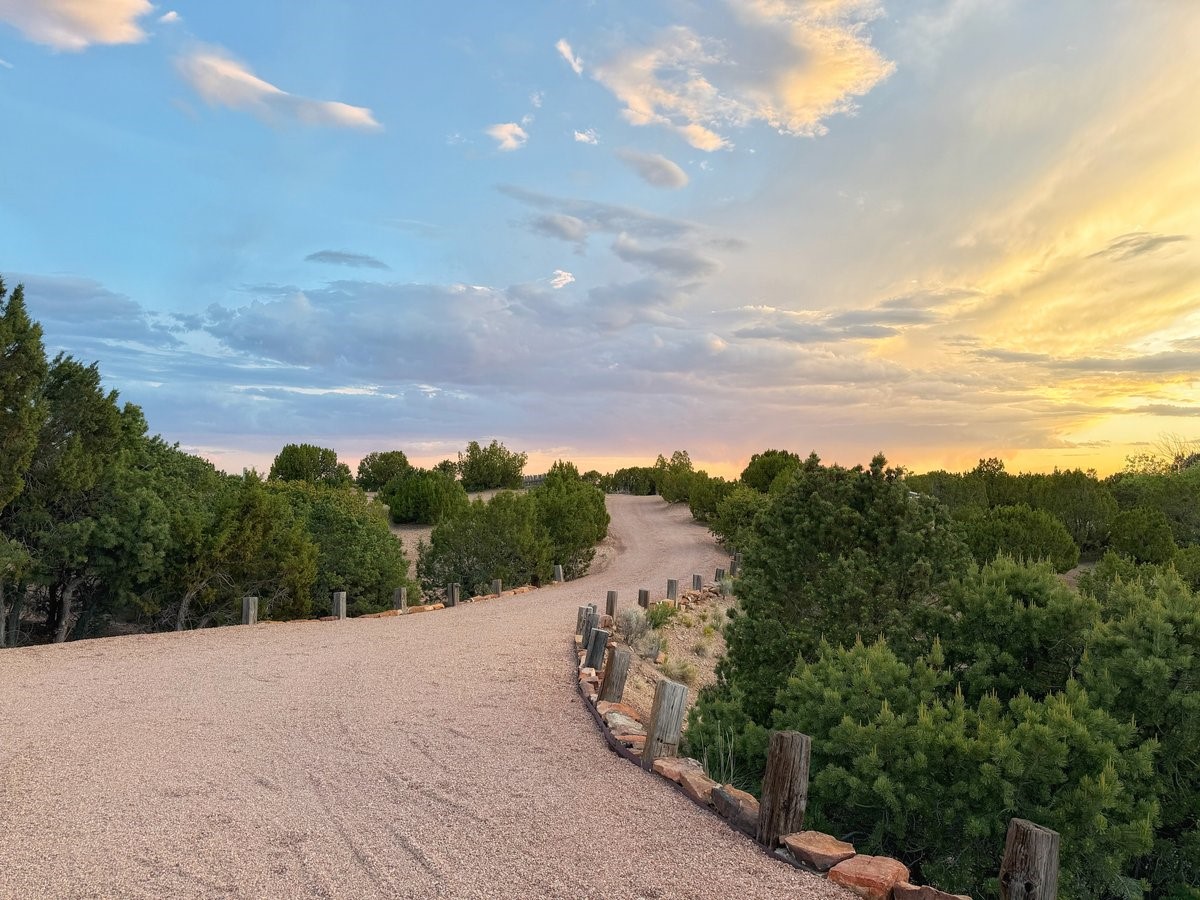 Perched on 2.5 serene acres with sweeping views of both the Jemez and Sangre de Cristo mountains, this 4-bedroom, 2-bath beauty brings together the best of Santa Fe style and mid-century design. From the moment you enter the front courtyard--complete with a kiva fireplace and peaceful water feature--you'll feel like you've stepped into your own private retreat where mid-century hip meets Santa Fe soul.